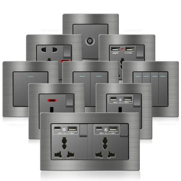 تلفزيون الأقمار الصناعية ,منفذ USB C ثنائي 6 سنون بقوة 18 واط ,45A ,20 أمبير ,الهاتف ,كمبيوتر CAT6 ,تلفزيون ,كابل USBC ثنائي 10 سنون بقوة 18 واط ,مفتاح المطبخ ,جرس باب موسيقي ,مفتاح جرس الباب ,مفتاح التعتيم ,مفتاح السرعة ,لوحة فارغة ,1 عصابة 13A 2USB ,1Gang 13A ,4عصابة 1 عصابة 13 A 2USB ,3 عصابة ثنائي الاتجاه ,2عصابة ثنائي الاتجاه ,عصابة واحدة باتجاهين ,2عصابة1Pin 2USB ,2عصابة 10Pin Universa ,2عصابة13 A USB C 18W ,2عصابة13 A 2USB ,2عصابة13 A ,عصابة واحدة 3Pin USB C 18W ,1 عصابة 5 دبوس 2USB ,عصابة واحدة 5Pin Universal ,1Gang 13A USB C 18W |