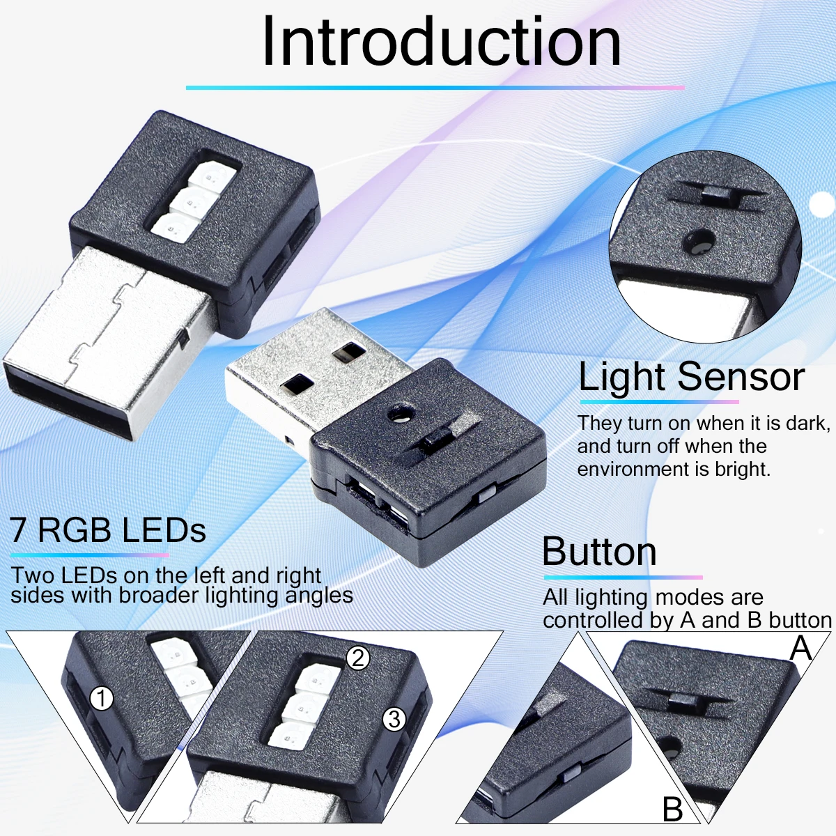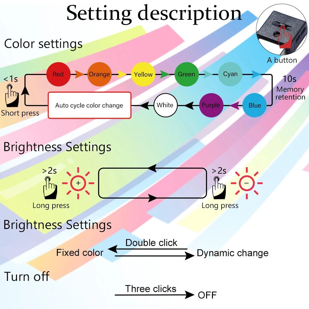 7 مصابيح LED بتقنية عالية تقدم ألوانًا زاهية (أحمر، برتقالي، أصفر، أخضر، أزرق، سماوي، بنفسجي، أبيض)