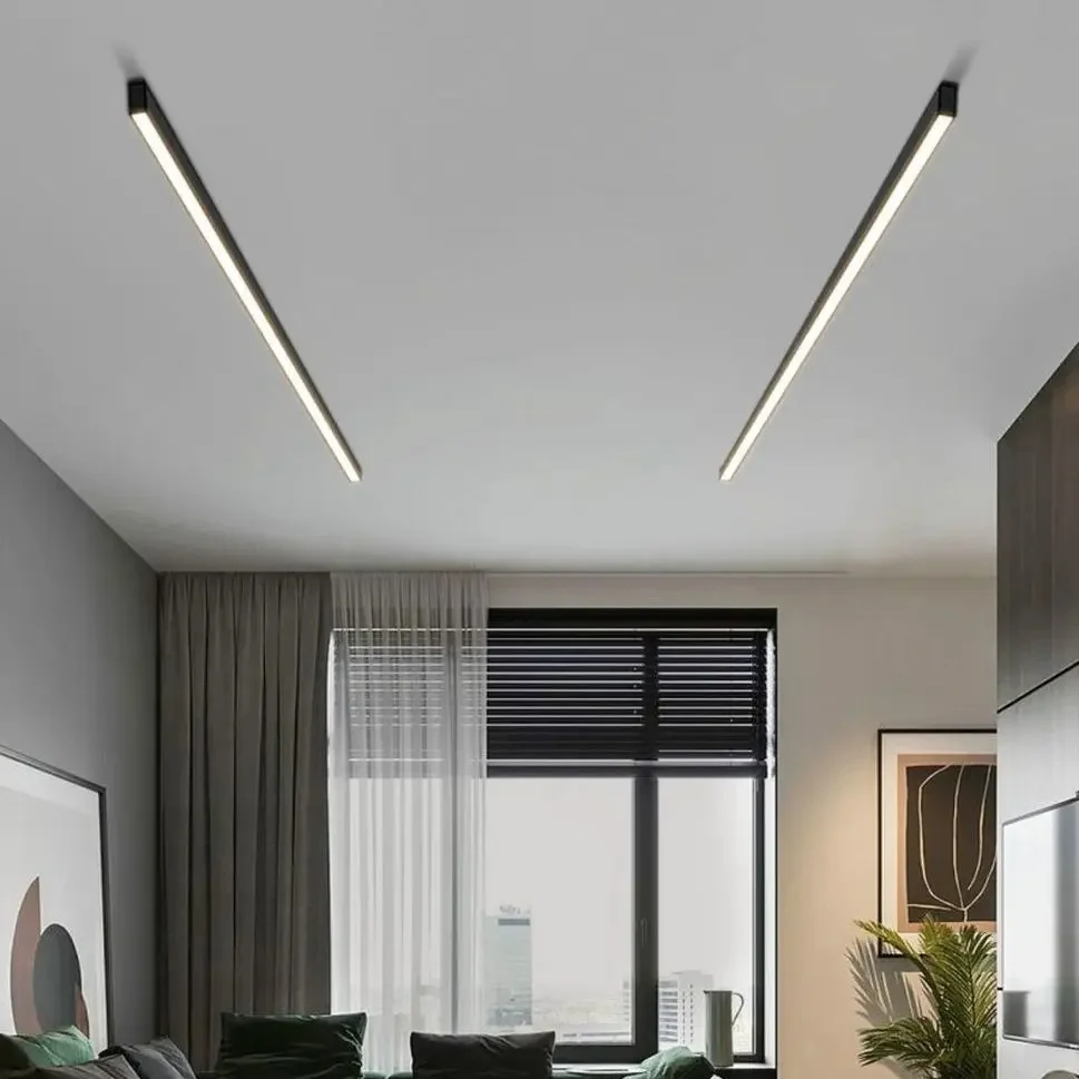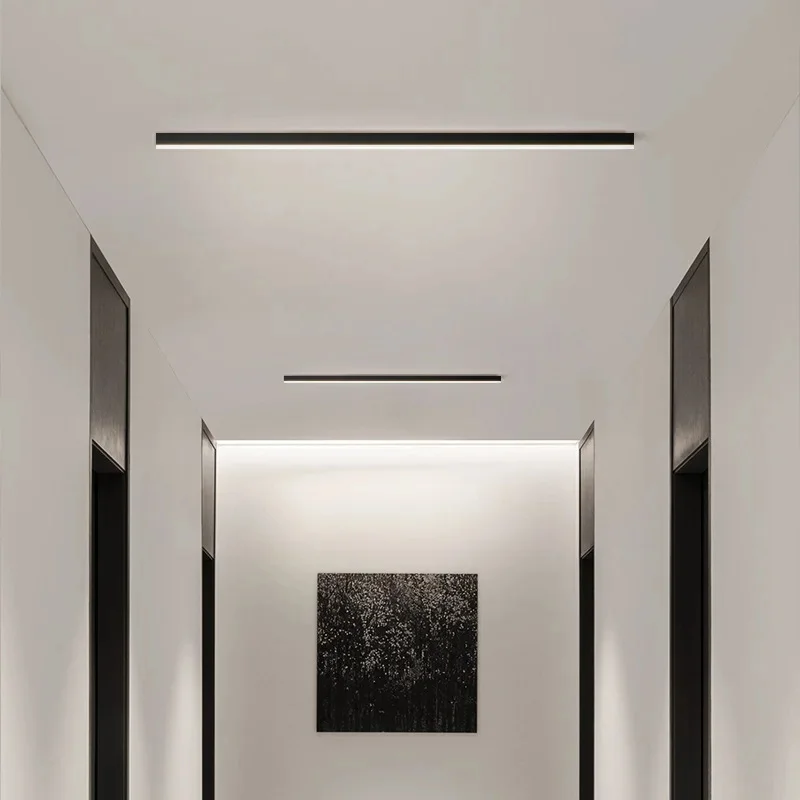 تصميم أنيق وMinimalist: شريط إضاءة طويل وسطي يناسب الديكورات العصرية والكلاسيكية، ويضيف لمسة جمالية خفية للسقف.