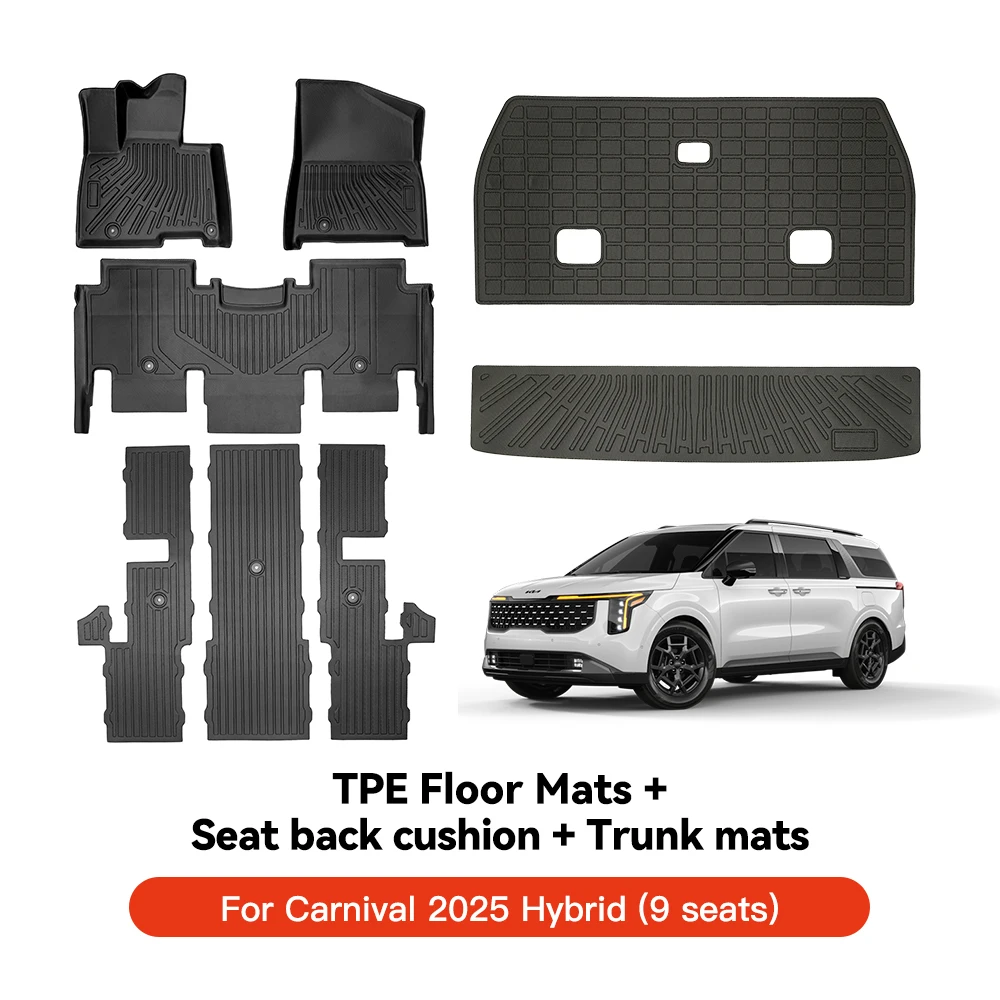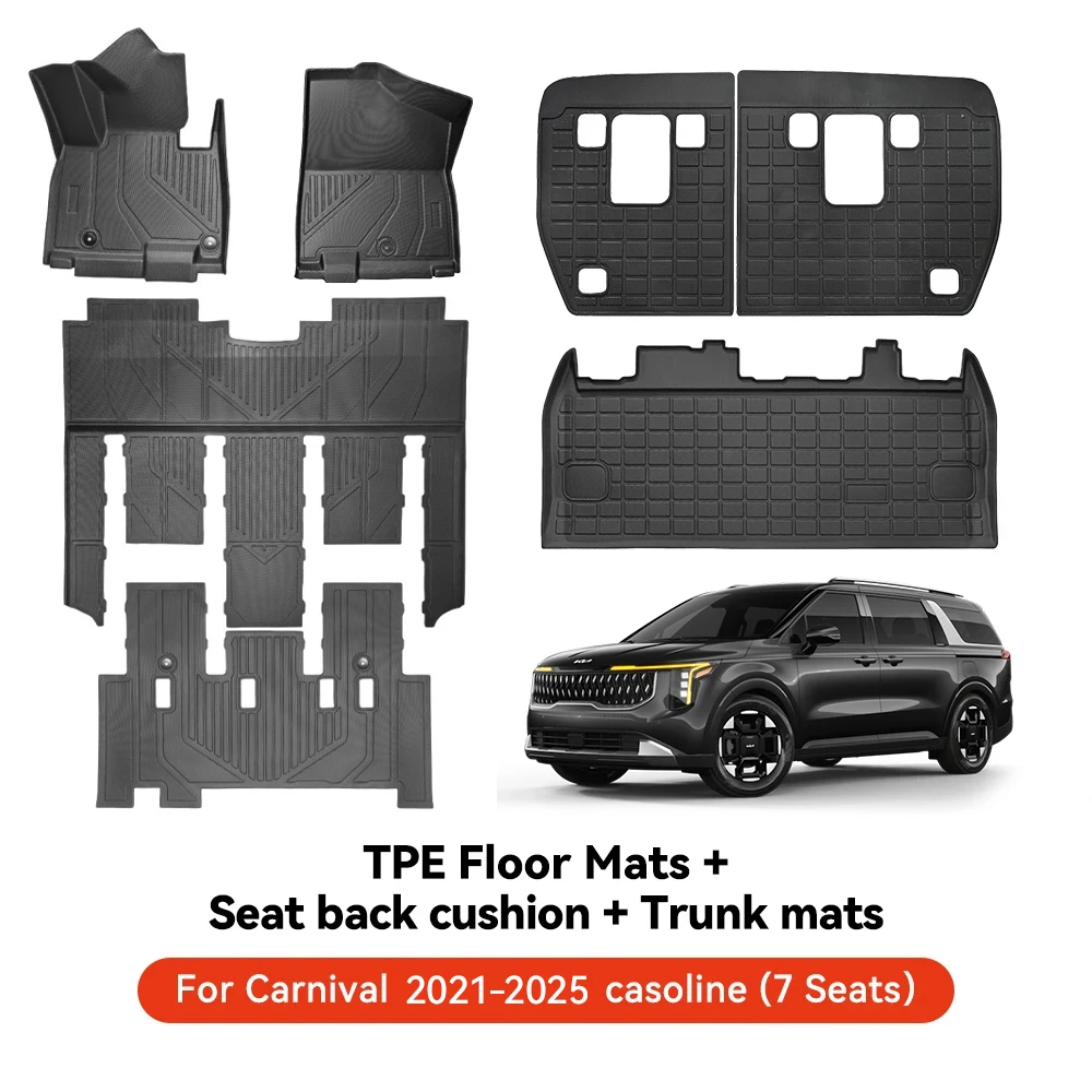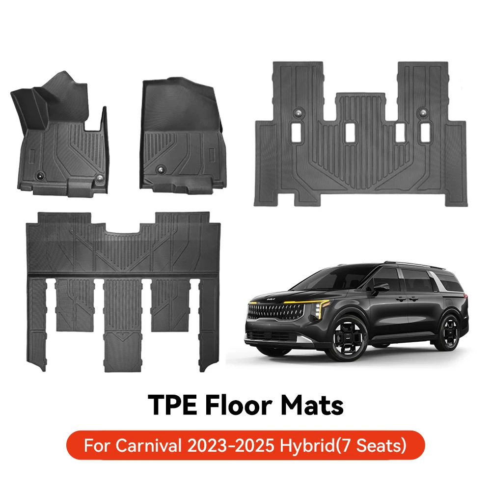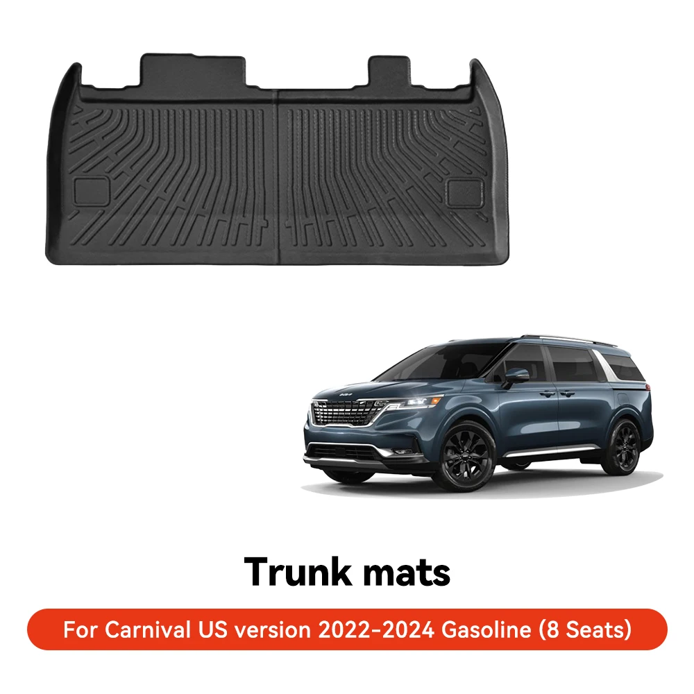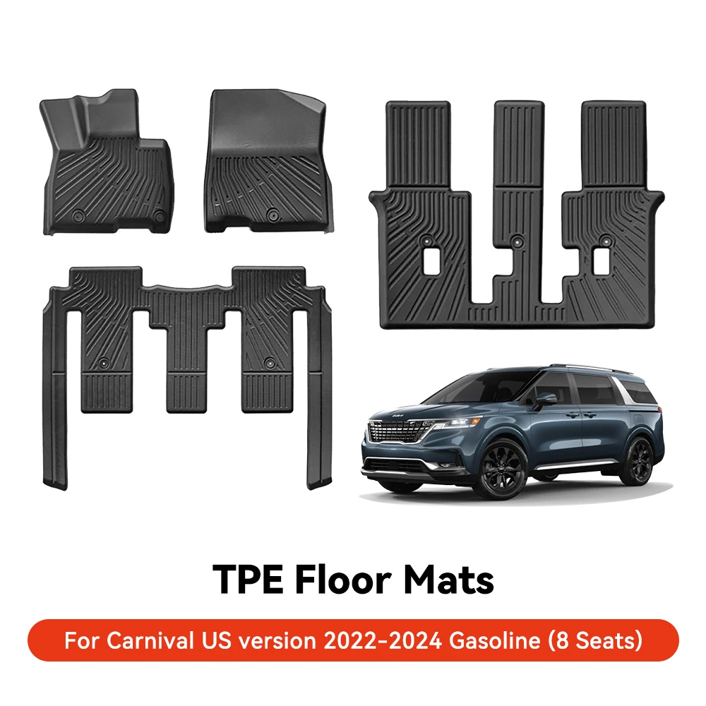 مجموعة بساط أرضية عالية الجودة مصممة خصيصًا لسيارات كيا كارنيفال موديل KA4 (7/8/9 مقاعد). توفر حماية كاملة ضد الماء والأوساخ مع الحفاظ على أناقة المقصورة الداخلية.