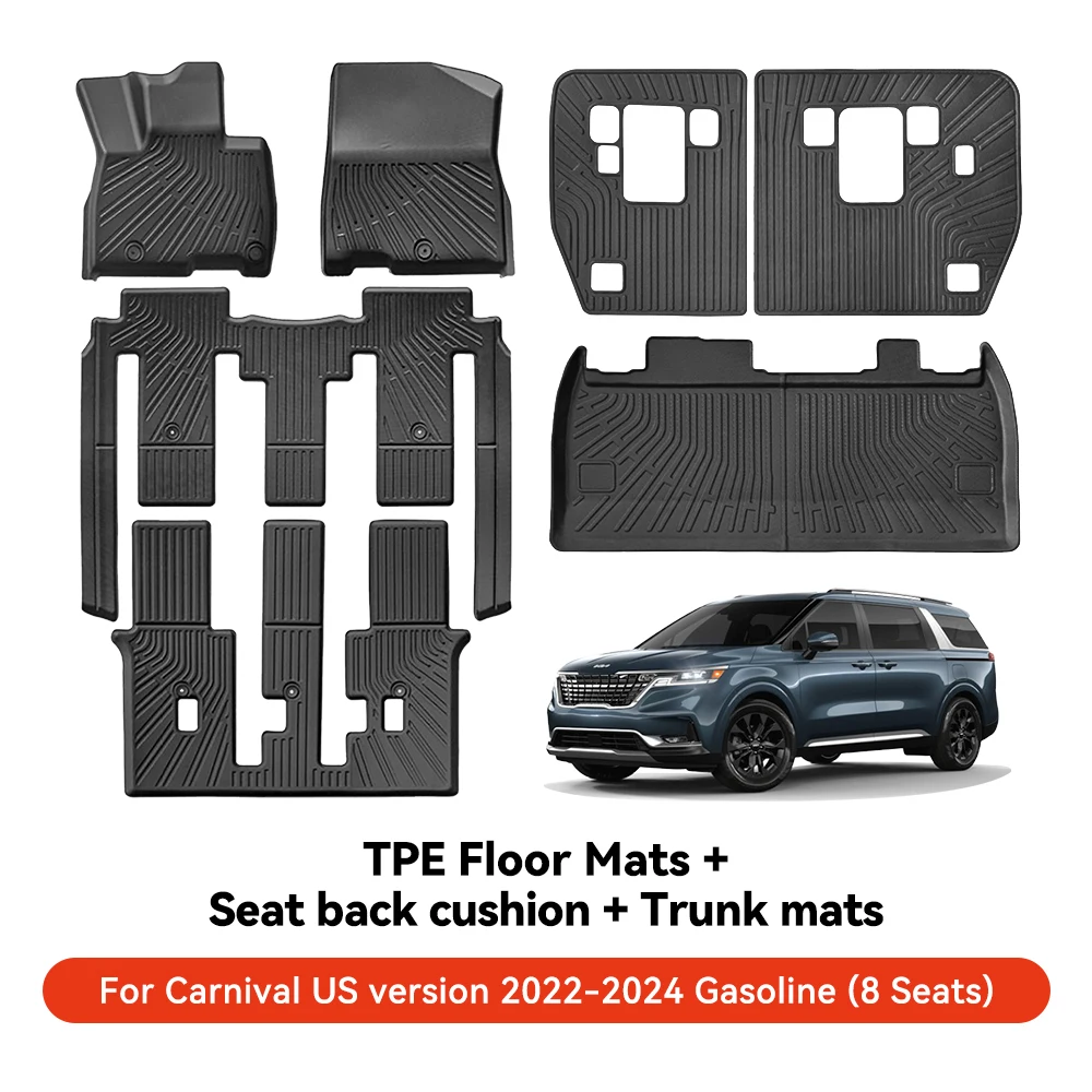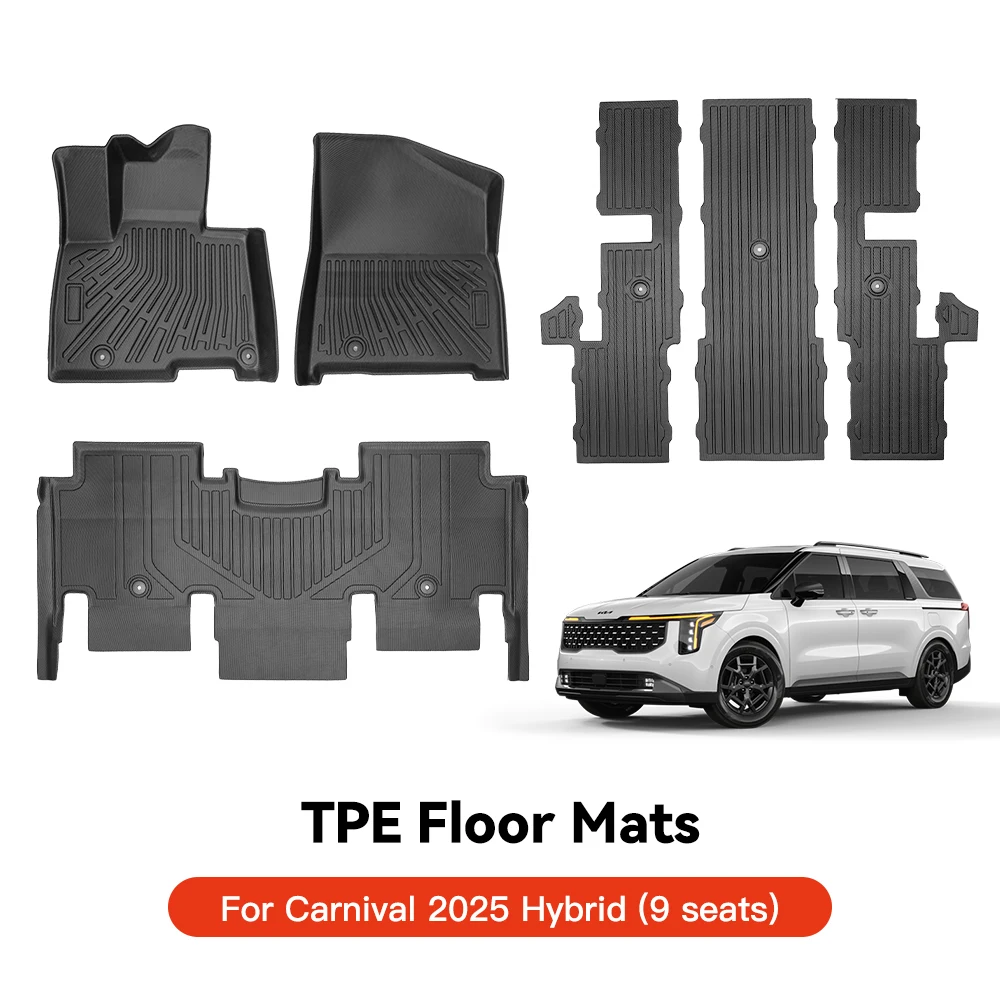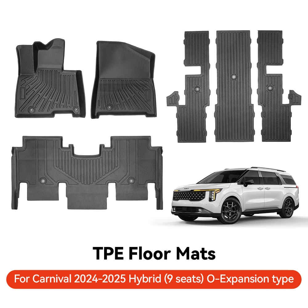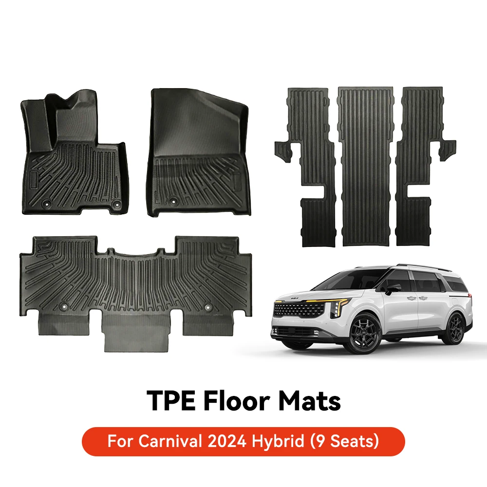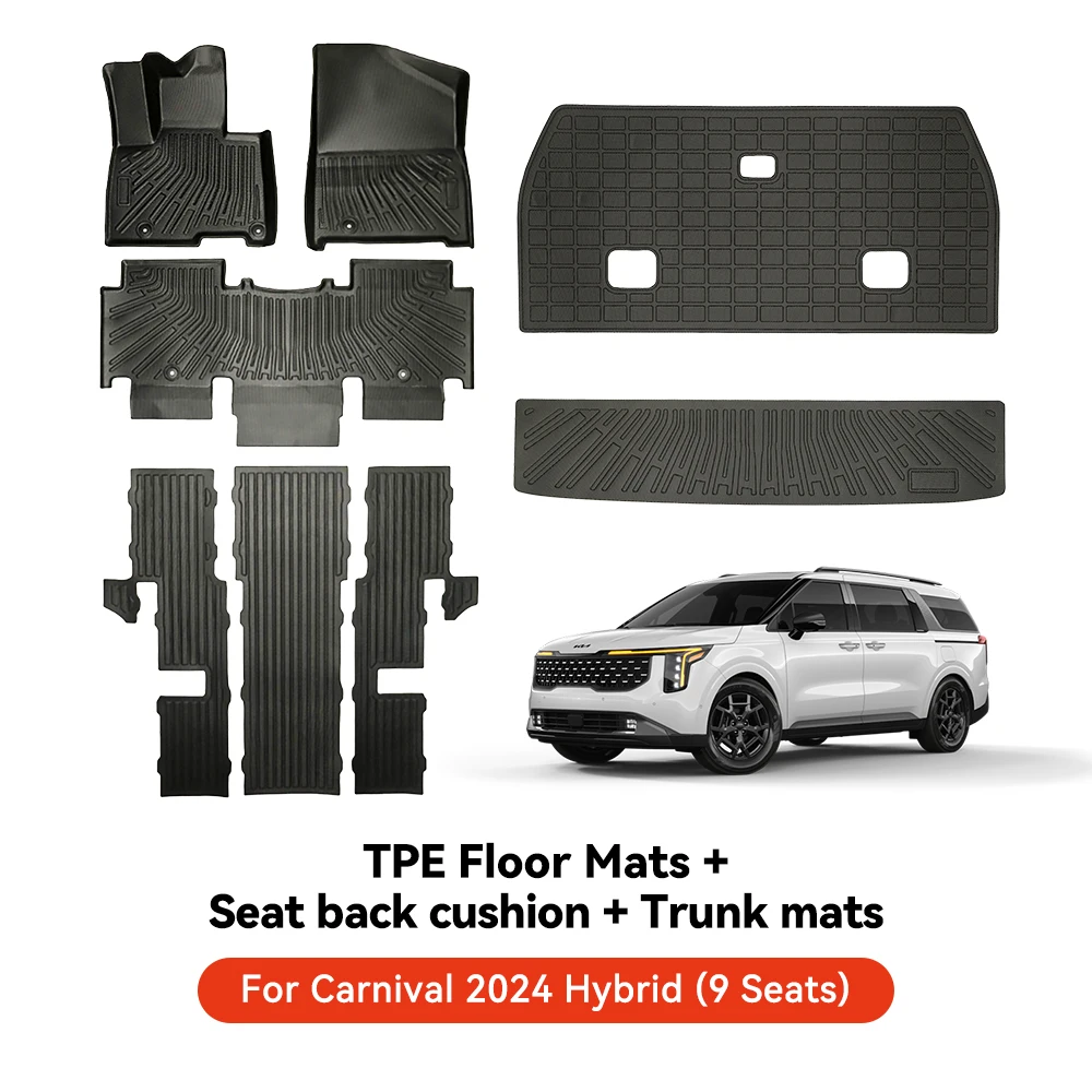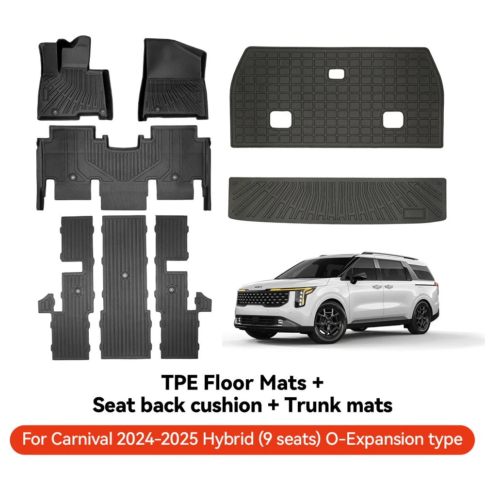 مجموعة بساط أرضية عالية الجودة مصممة خصيصًا لسيارات كيا كارنيفال موديل KA4 (7/8/9 مقاعد). توفر حماية كاملة ضد الماء والأوساخ مع الحفاظ على أناقة المقصورة الداخلية.