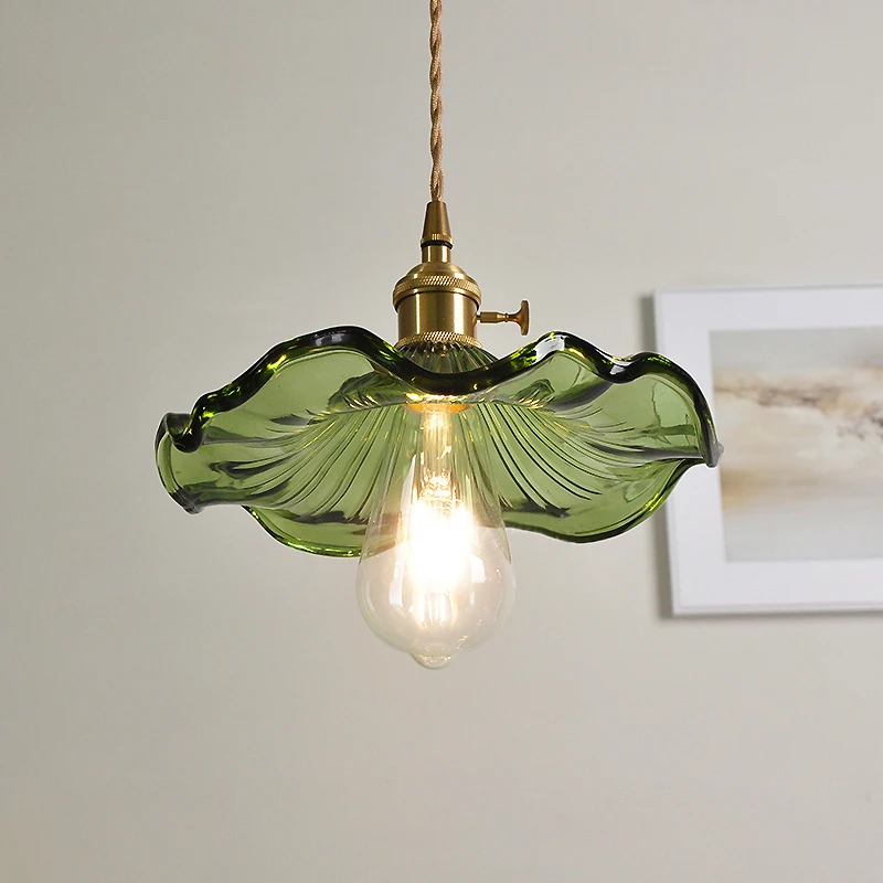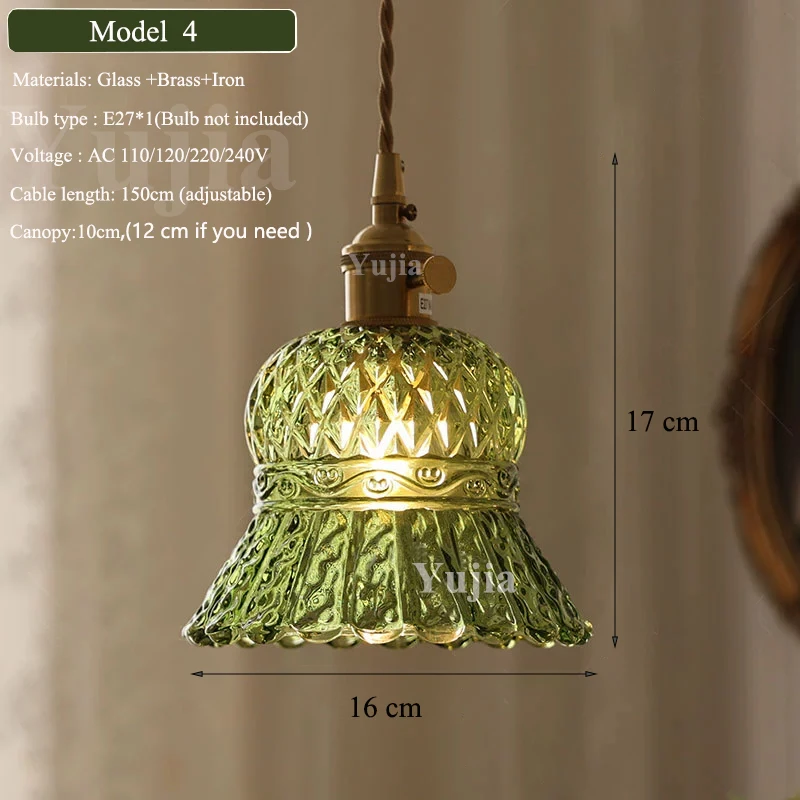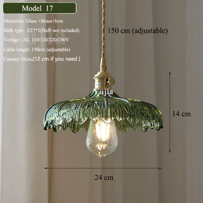تمتاز هذه الثريا بتصميمها الفريد الذي يناسب مختلف أنماط الديكور، من الكلاسيكي إلى العصري، مع زجاج أخضر عالي الجودة يعكس الضوء بشكل أنيق ومريح للعين. السلسلة القابلة للتعديل تمنحك مرونة في اختيار الارتفاع المناسب لمساحتك، بينما تضيف لمسات النحاس المصقول لمسة من الفخامة والأناقة.