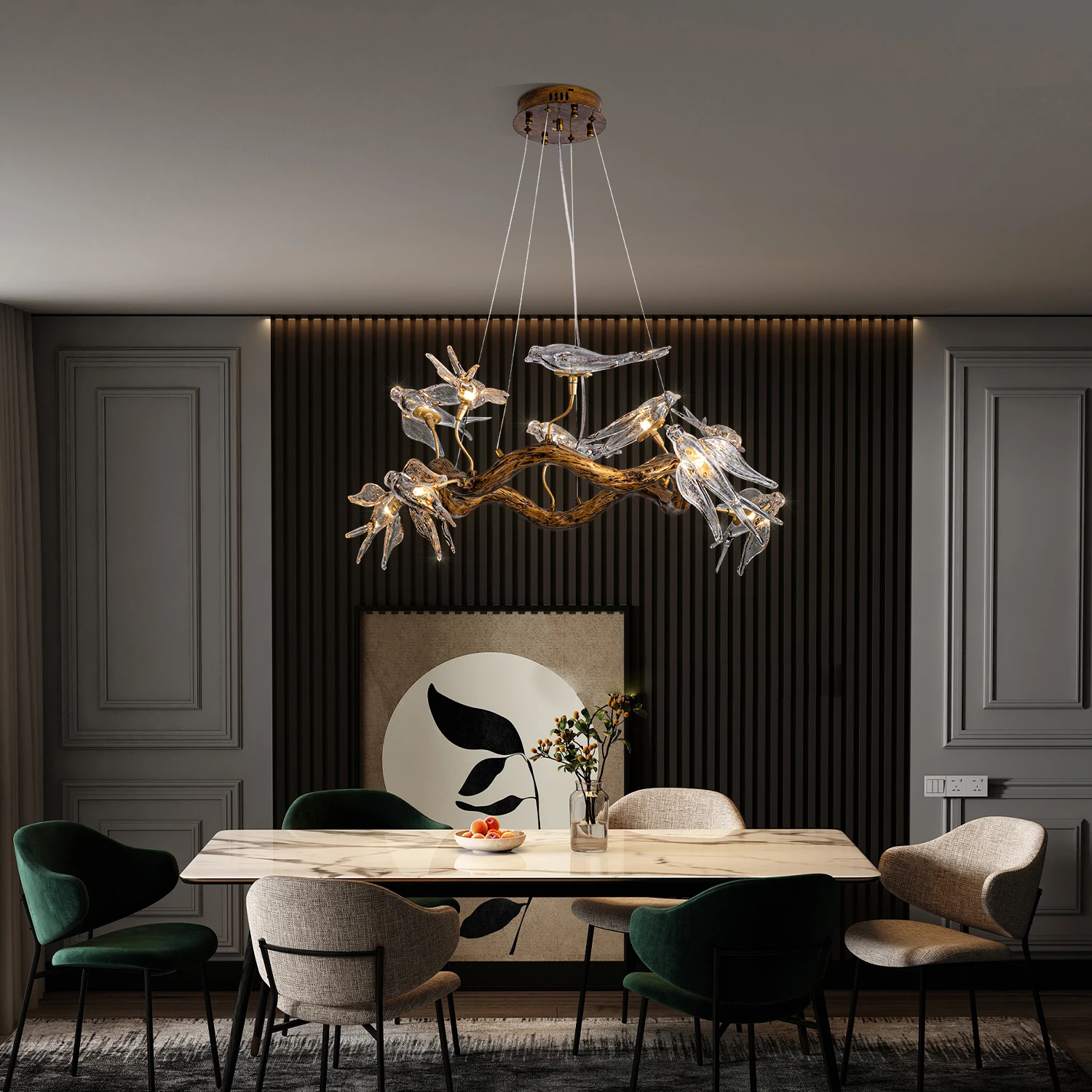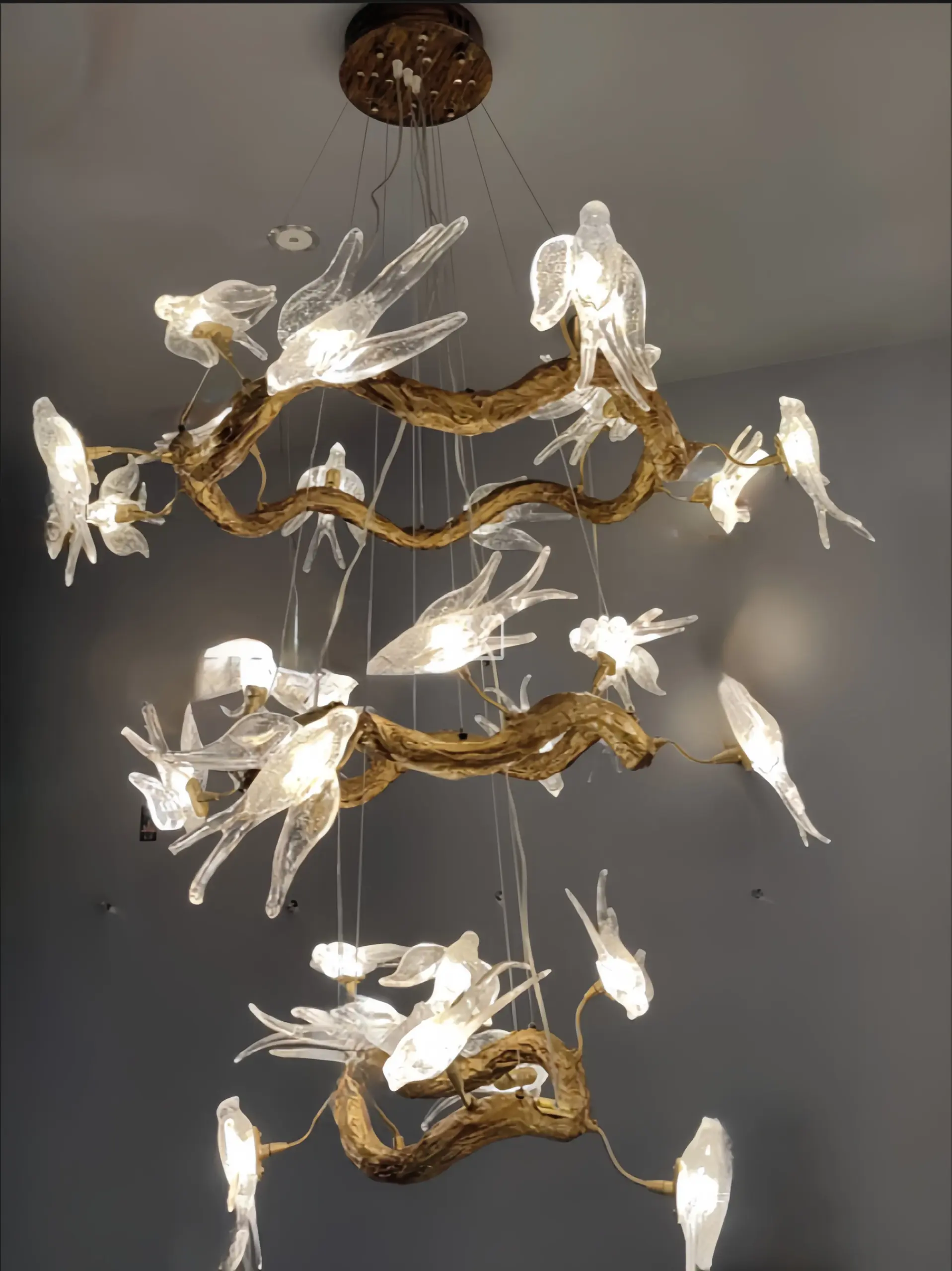 ثريا طيور زجاجية فاخرة بتصميم كلاسيكي