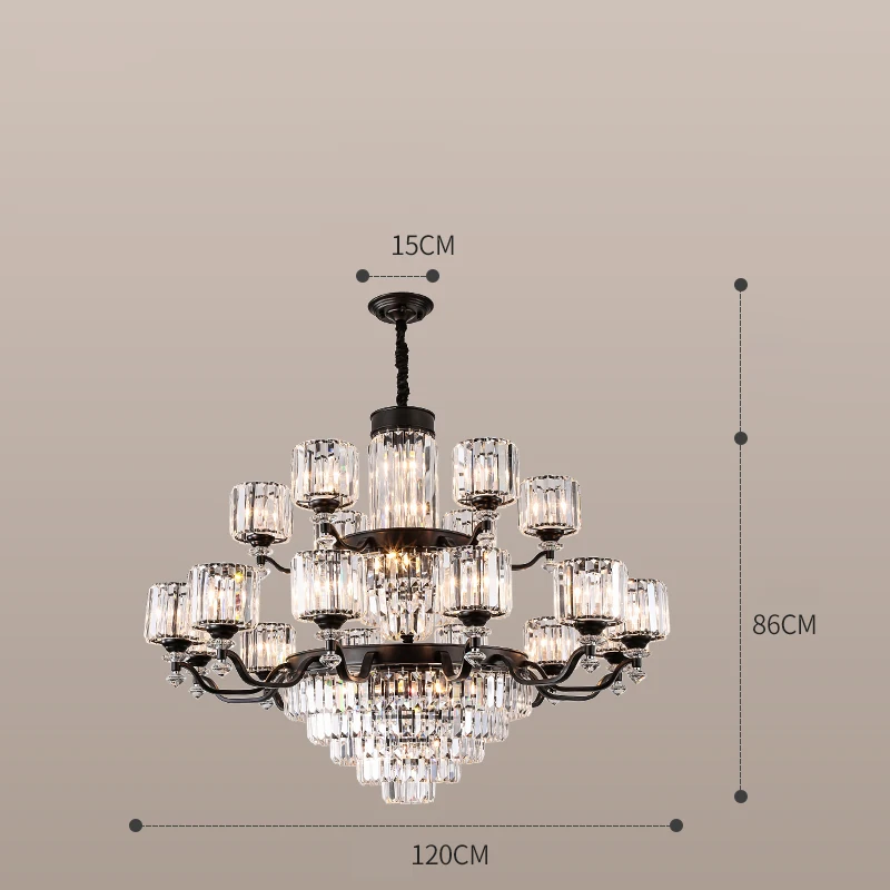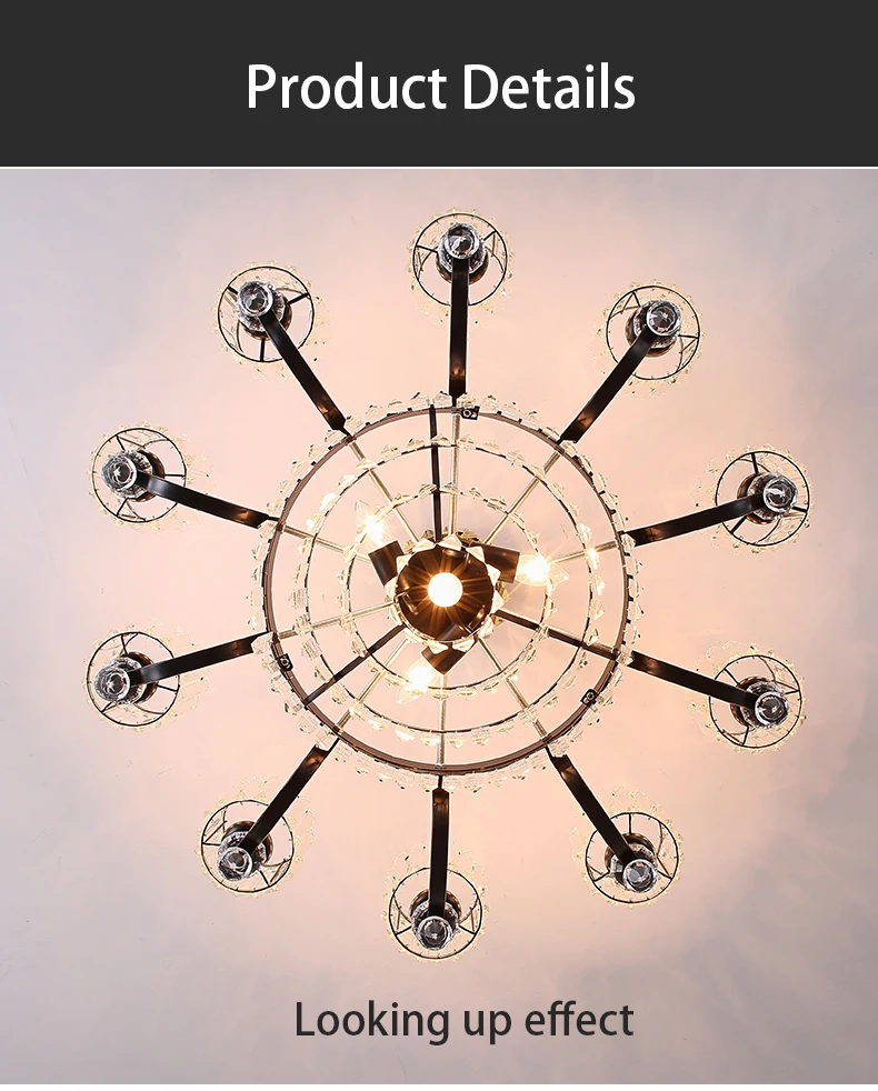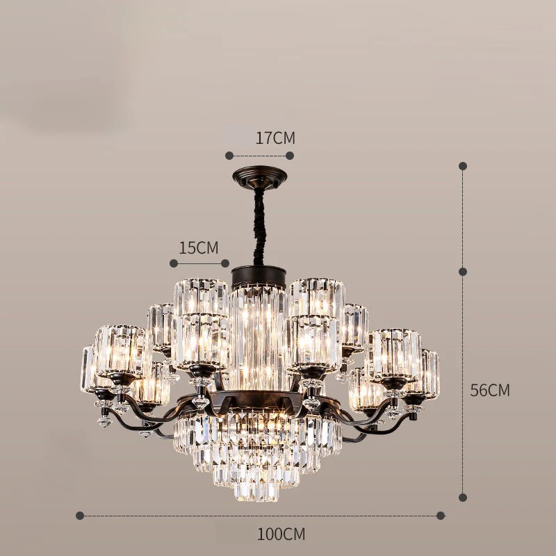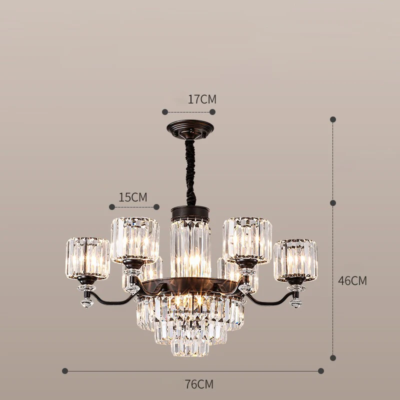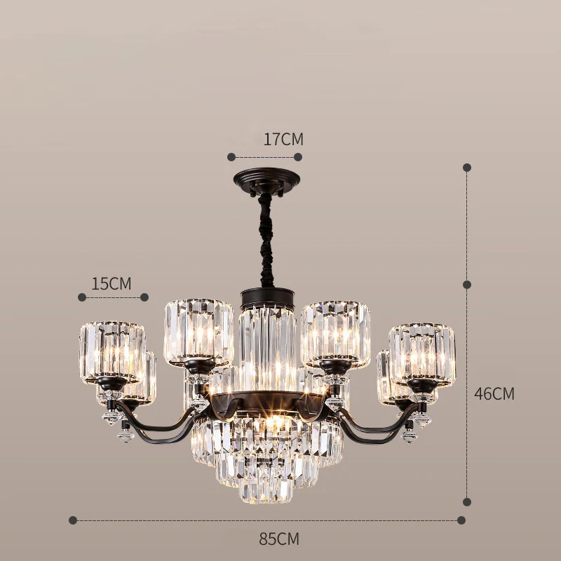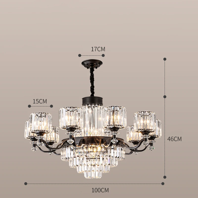 تصميم عصري متكامل: هيكل معدني عالي الجودة مع تشطيبات متينة وزخارف كريستالية عالية الوضوح تعكس الضوء بشكل استثنائي