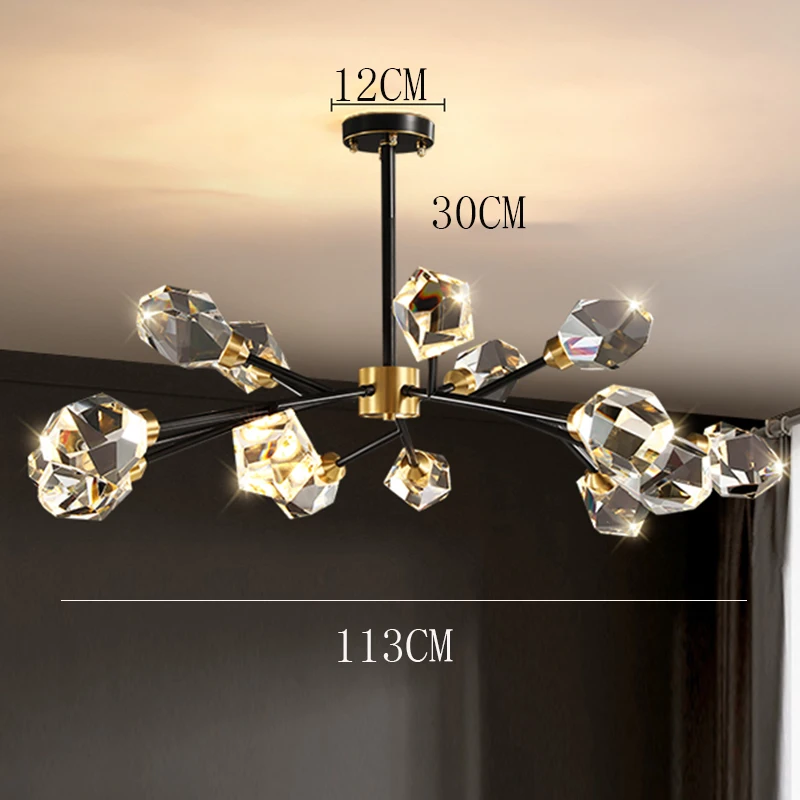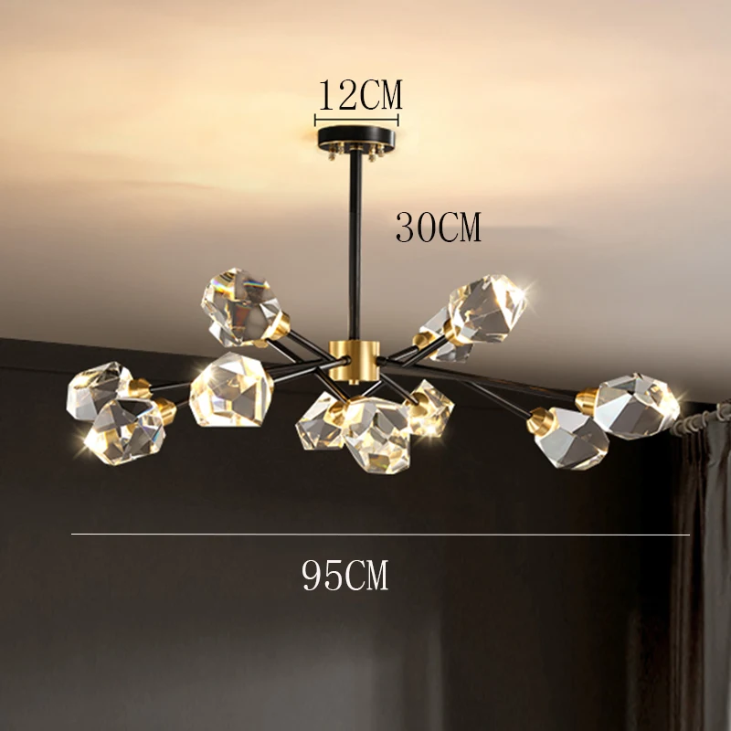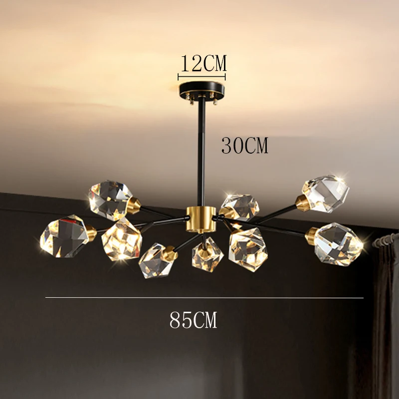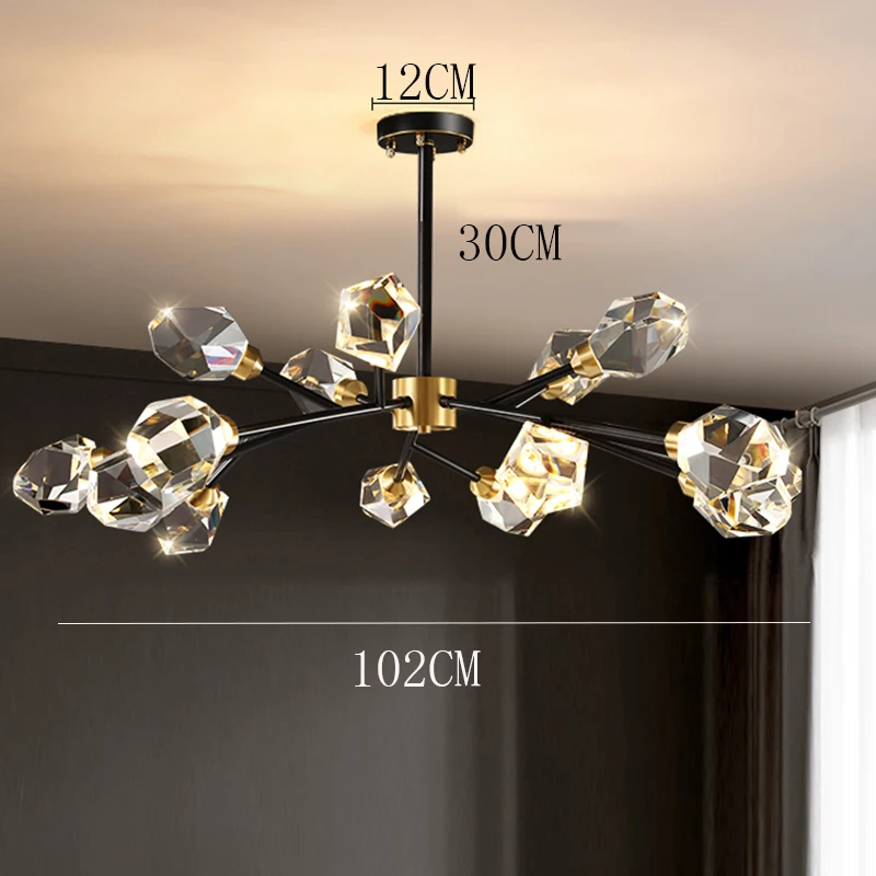 تصميم عصاري وأنيق: هيكل من المعدن المقاوم مصقول بلمسة فاخرة، مع زخارف كريستالية عالية الجودة تعكس الضوء بشكل مبهر.