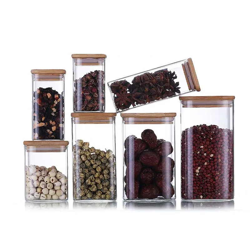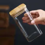 جرة زجاجية مربعة شفافة مع غطاء – تخزين آمن للشاي، البن، والمكسرات