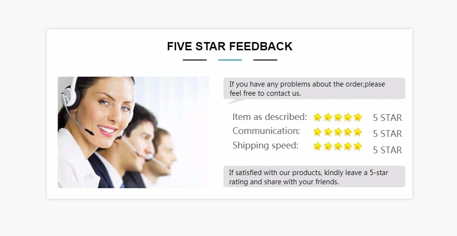 When you receive the product, if you have any questions, please contact us first. Please do not directly give me a bad response, we will solve the problem in the first time. Your satisfaction is our aim!