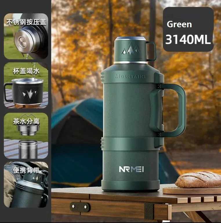 زجاجة مياه ترمس سعة 3 لتر، زجاجة مياه كبيرة من الفولاذ المقاوم للصدأ، قوارير مفرغة، فنجان القهوة