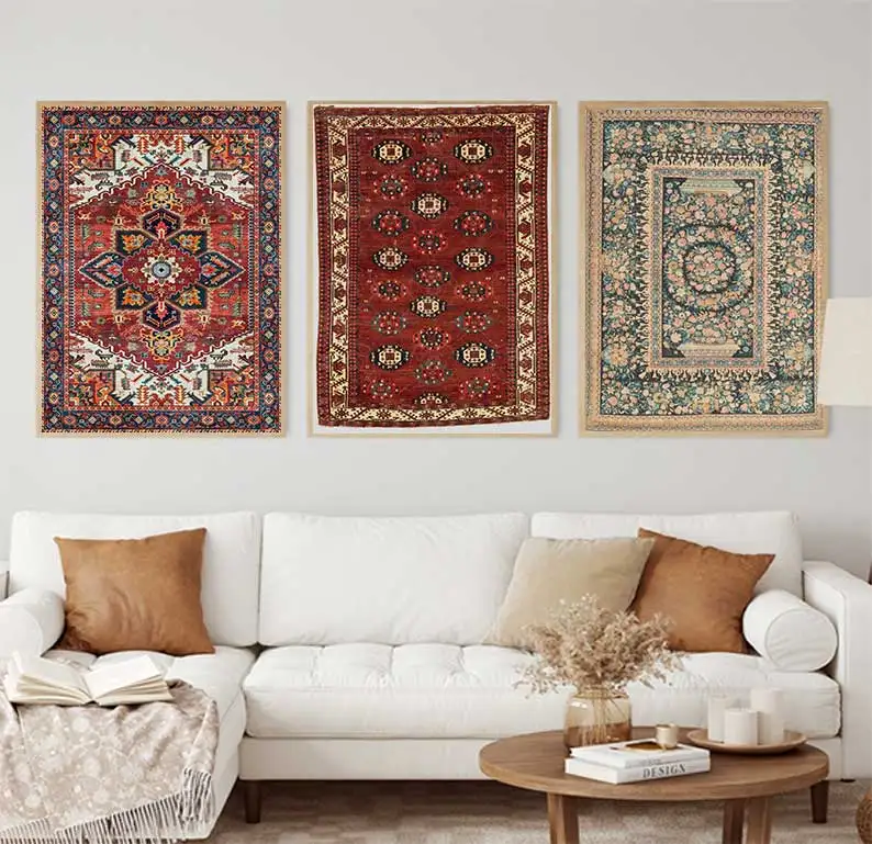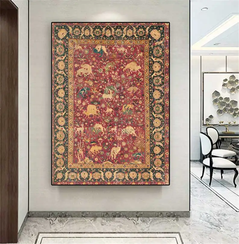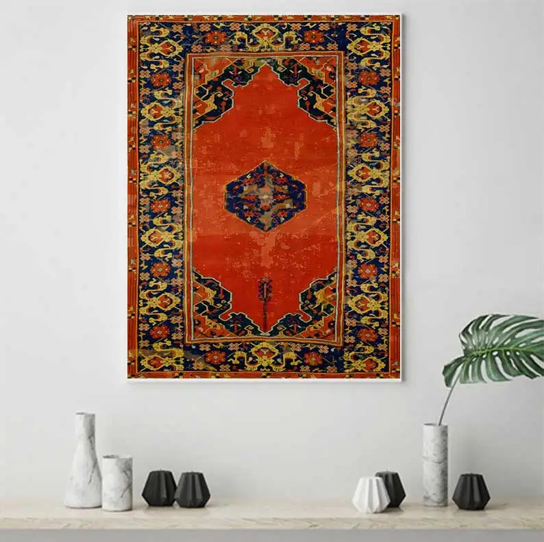 سجاد فارسي شرقي من العصور الوسطى، مطبوعات فنية على قماش، ملصقات تجريدية، لوحات سجاد عتيقة من عصر النهضة،