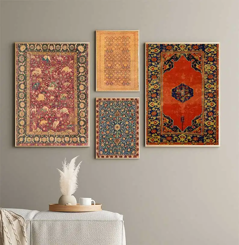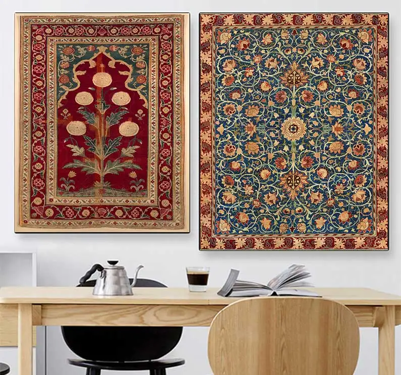 سجاد فارسي شرقي من العصور الوسطى، مطبوعات فنية على قماش، ملصقات تجريدية، لوحات سجاد عتيقة من عصر النهضة،