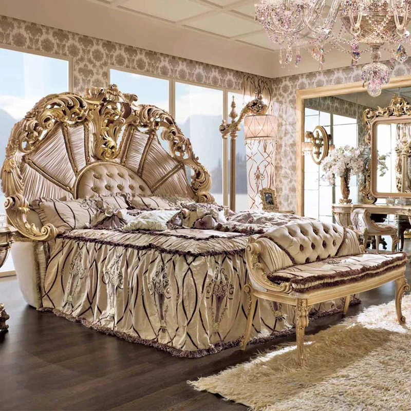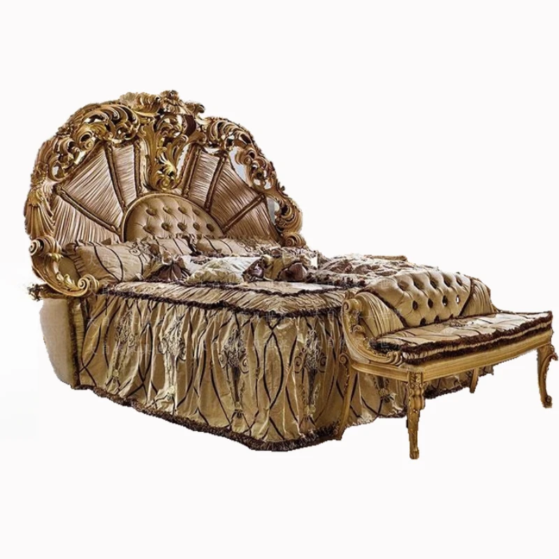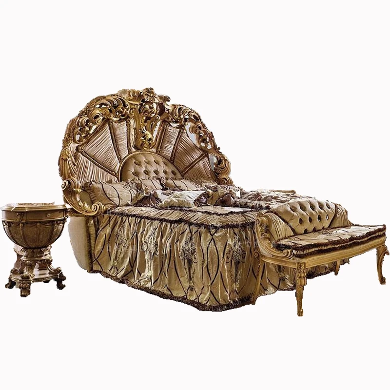سرير أميرة أوروبي فاخر من الخشب الصلب