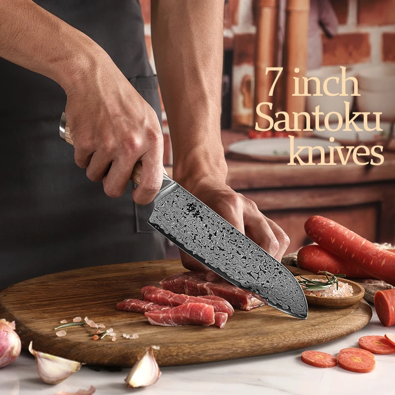 تتميز سلسلة سكاكين المطبخ من V Gold Damascus Steel Series بأنها صُنعت بدقة فائقة باستخدام فولاذ دمقي 67 طبقة من نوع V Gold 10Cr15CoMoV . تجمع هذه السلسلة بين القوة، المتانة، والحدة العالية ، مما يجعلها خيارًا مثاليًا لكل من الطهاة المحترفين أو محبي الطهي المنزلي الراغبين بأدوات عالية الأداء.