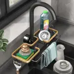 سلة تجفيف للمطبخ من الألومنيوم – لتنظيم الإسفنجة، الصابون، وحوامل الحنفية بتصميم عملي وأنيق
