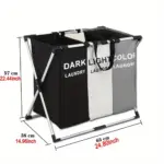 سلّة غسيل ثلاثية الخانات قابلة للطي – مقاومة للماء تنظم الملابس القذرة بأسلوب ذكي وأنيق