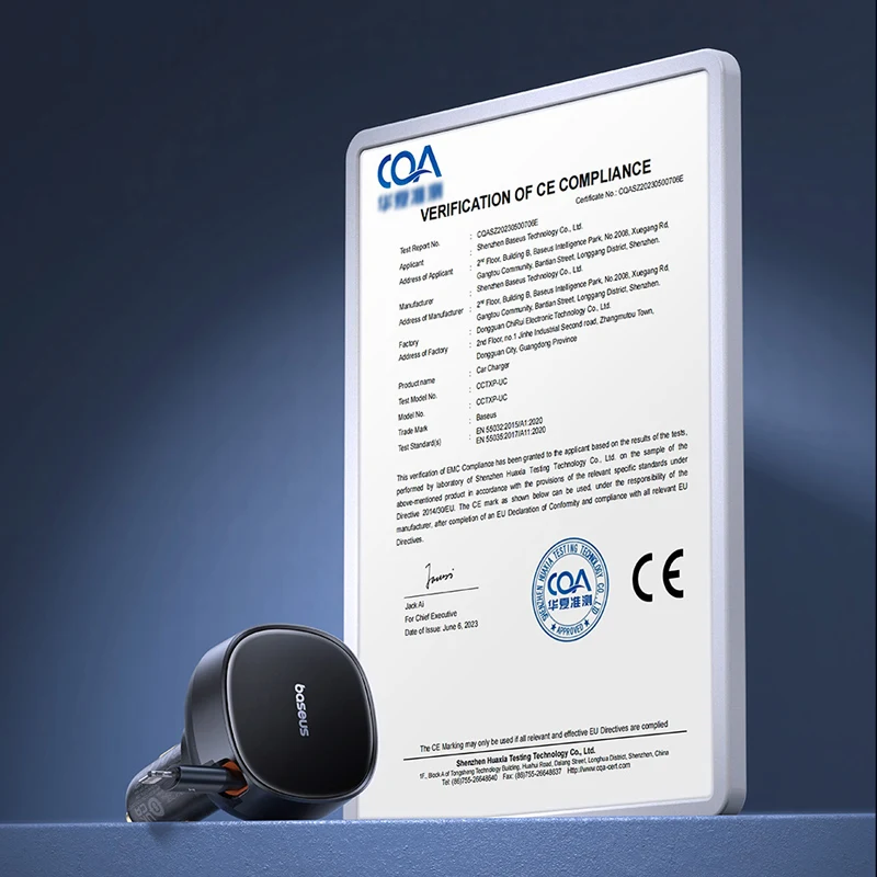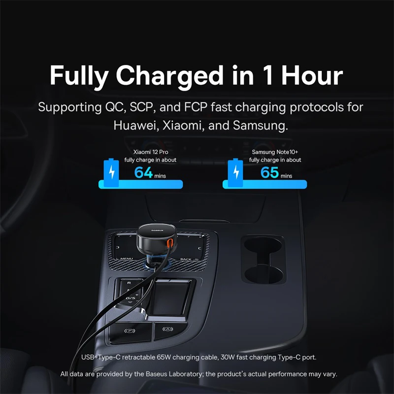 شاحن سيارة Baseus بقوة 60 واط مع كابل قابل للسحب