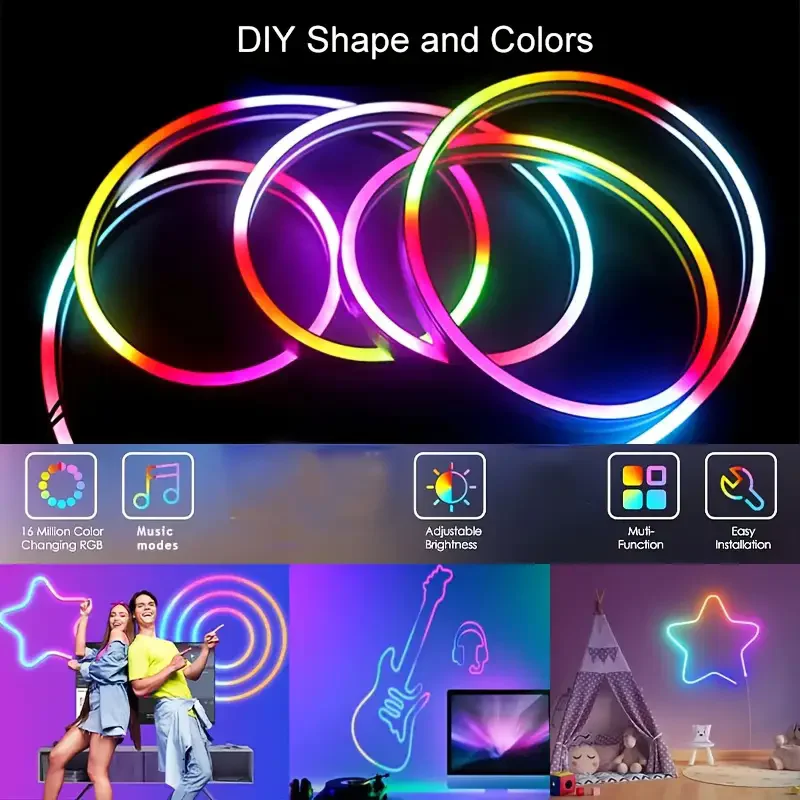 أضف سحر الألوان والحيوية إلى منزلك! شريط الإضاءة النيوني الذكي هذا هو الحل الأمثل لتحويل أي مساحة إلى مكان ساحر ومعاصر. يتميز بتقنية RGBIC المتطورة التي تسمح بعرض عدة ألوان في نفس الوقت على طول الشريط، لتحصل على تأثيرات ضوئية مبهرة لا مثيل لها.
