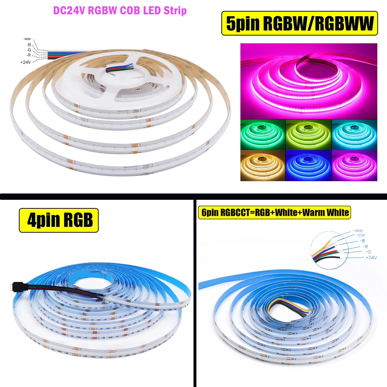 RGBW: يجمع بين ألوان RGB المتعددة ولون أبيض نقي ساطع للإضاءة اليومية الواضحة.