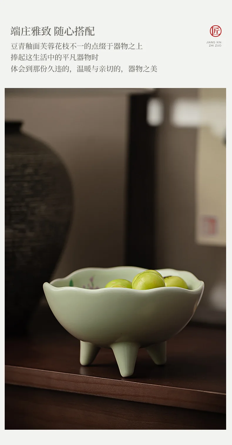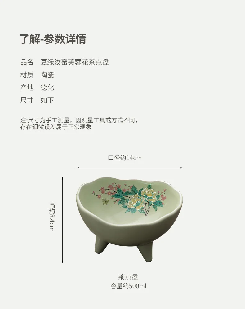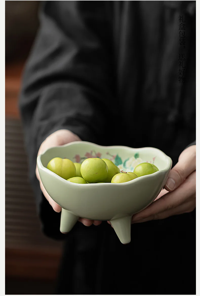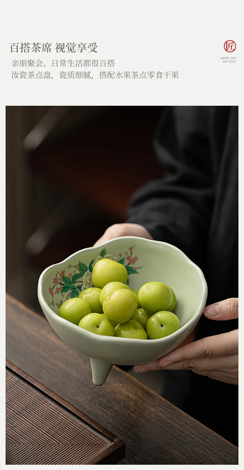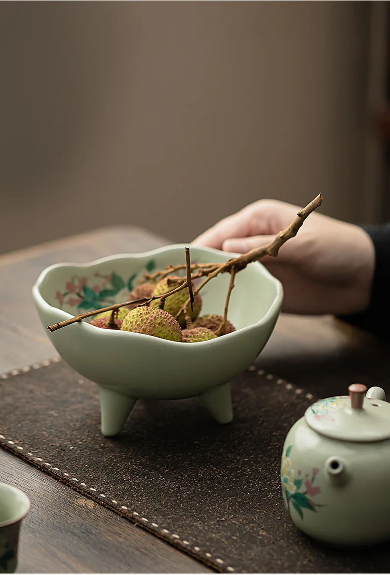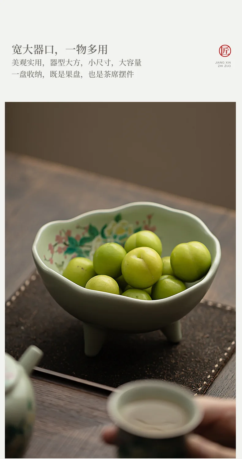 صحن تقديم سيراميك كبير بأزهار الكادي – مناسب لتقديم الفواكه المجففة، المقبلات، المقبلات، ومنها ☕🌺🍒