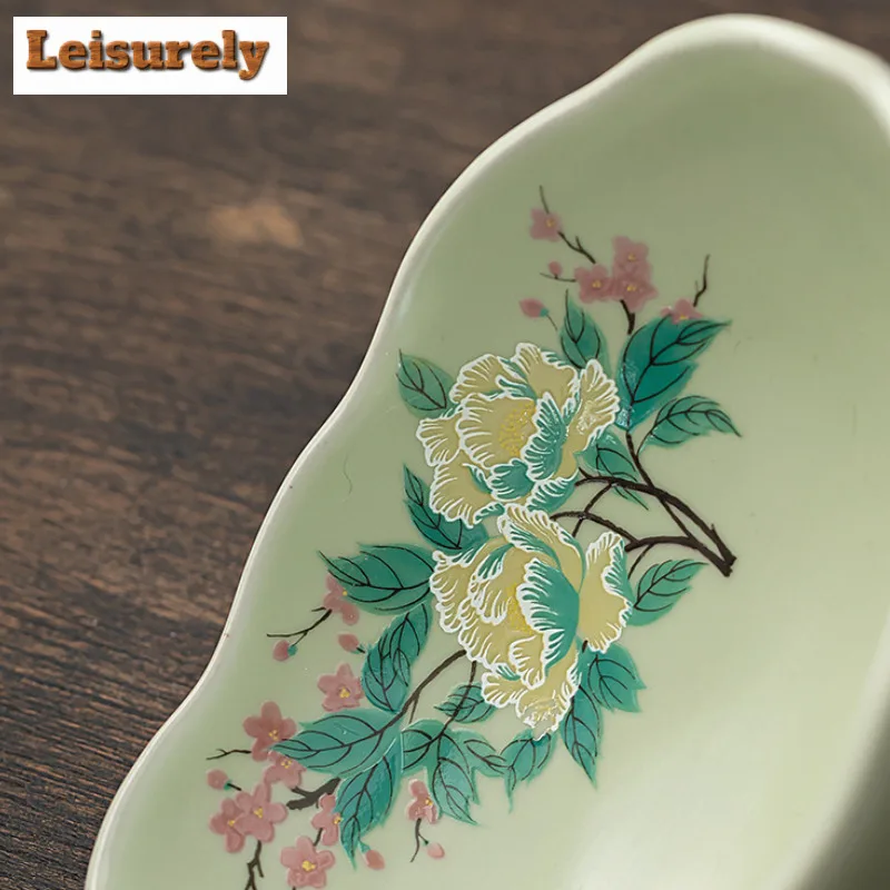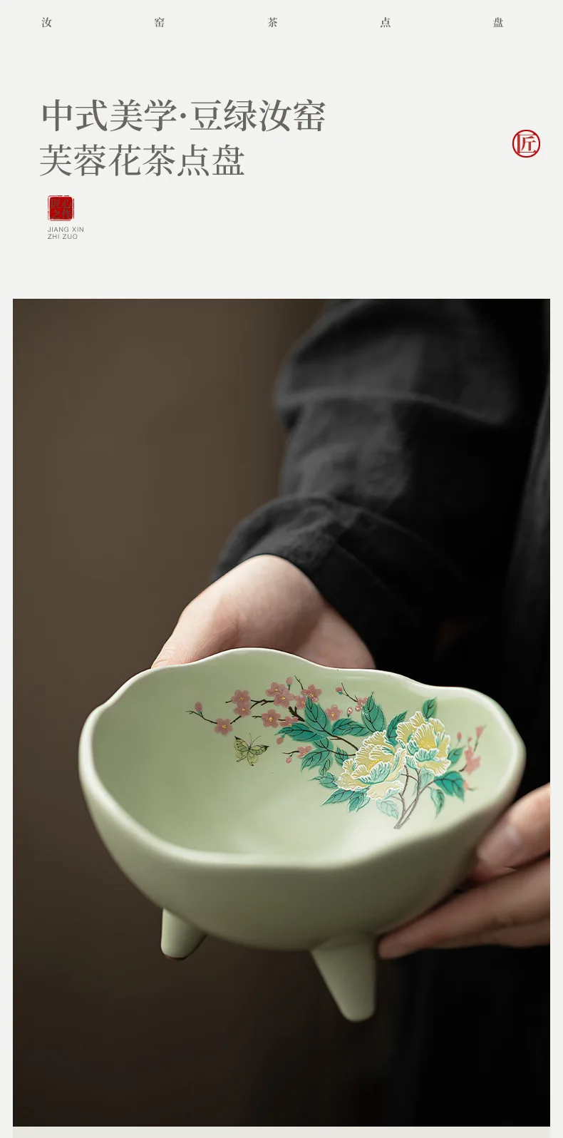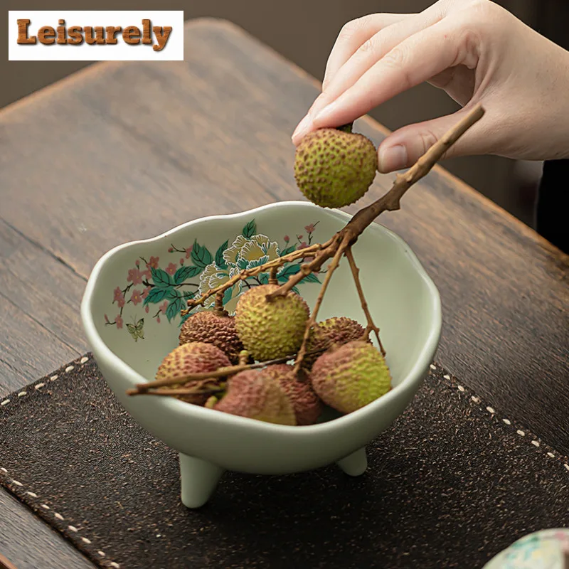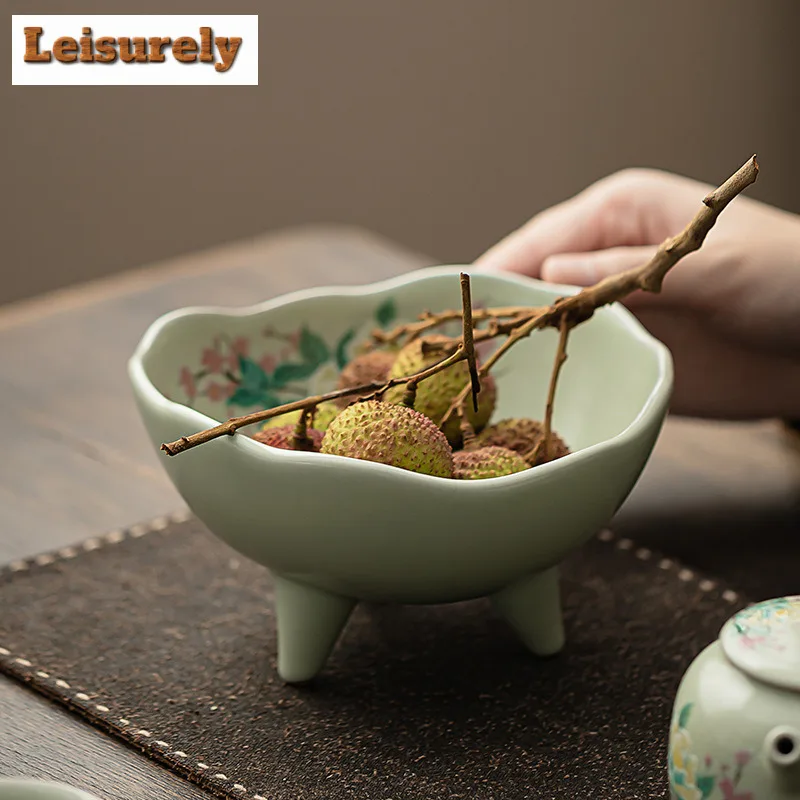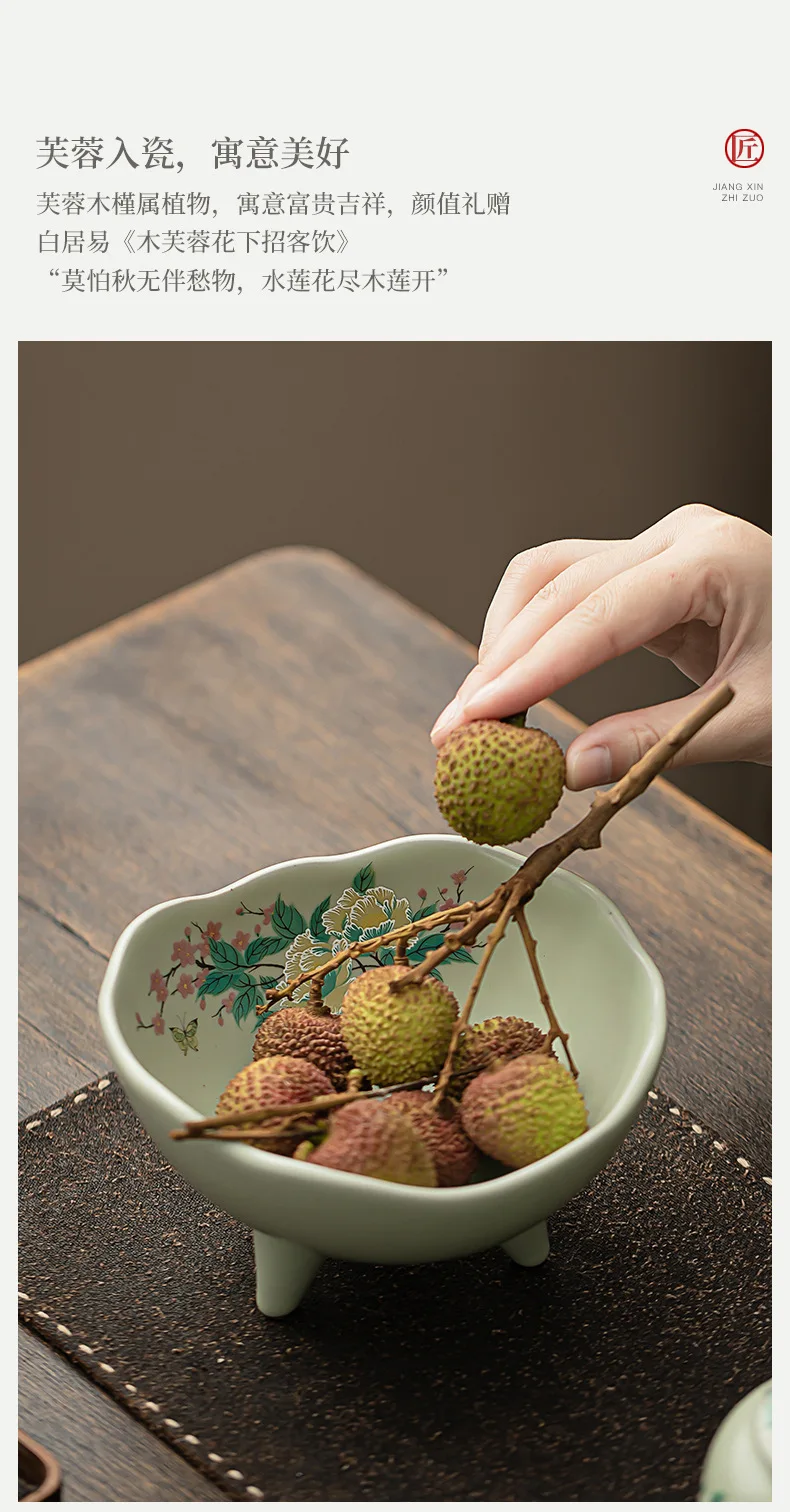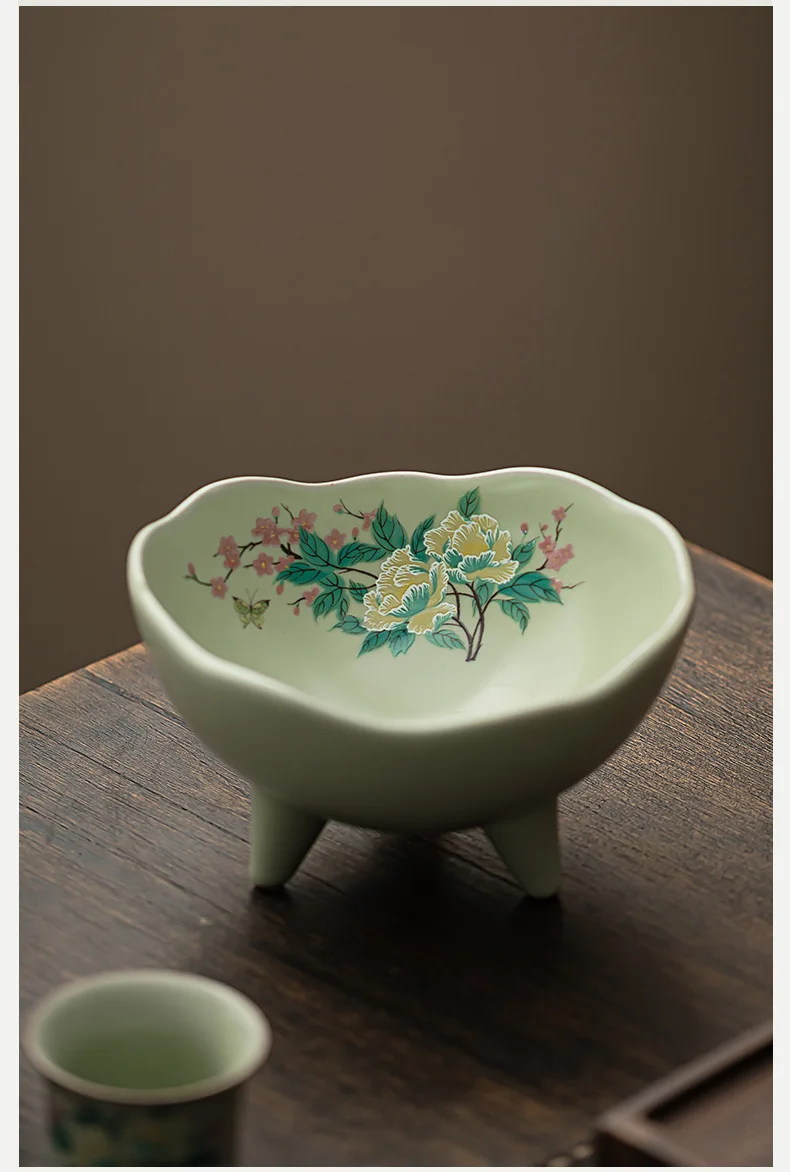 صحن تقديم سيراميك كبير بأزهار الكادي – مناسب لتقديم الفواكه المجففة، المقبلات، المقبلات، ومنها ☕🌺🍒