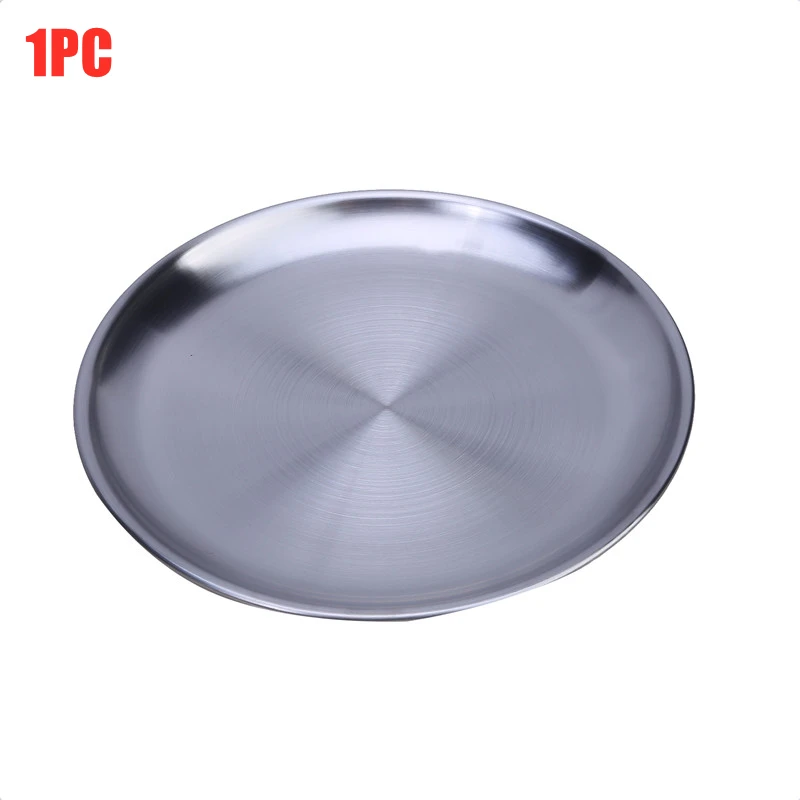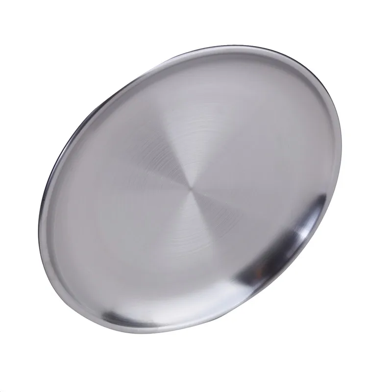 صحن دايرة من الاستانلس ستيل – تصميم فاخر وصحي، مناسب لكل المناسبات والمطاعم 🥇🍽️✨
