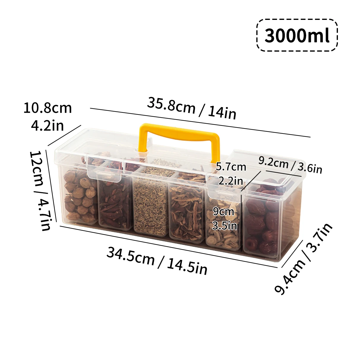 ابدَ نظام جديد في تنظيم مطبخك مع هذا الصندوق البلاستيكي الذكي اللي يقدّم لك 6 أقسام منظمة تخلّيك تحفظ التوابل، البقوليات، الشاي، وحتى الحبوب بدون ما تختلط أو تتناثر. التصميم الداخلي المقسّم يمنّك تشوف كل شي بوضوح، وتقدر تجيب المكوّن اللي تبغاه بسرعة ومن غير فوضى. السعة الكبيرة تناسب الاستخدام اليومي، والمقابض الجانبية تسهل عليك الحمل والنقل داخل المطبخ أو حتى وقت التنقل. هيكله اللي من مادة الـ PP القوية مع غطاء محكم يحمي محتوياتك من الرطوبة والغبار، وهو خيار عملي ومثالي لكل بيت يحب النظام والنظافة.