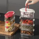 التصميم المحكم يمنع دخول الرطوبة والغبار، ويضمن لك بقاء التوابل، الملح، السكر، الشطة، البقوليات، وحتى الحلويات طازجة لأطول فترة. بالإضافة إلى خاصية التراص الرأسي اللي توفر لك مساحة كبيرة داخل الدولاب أو على الرفوف.