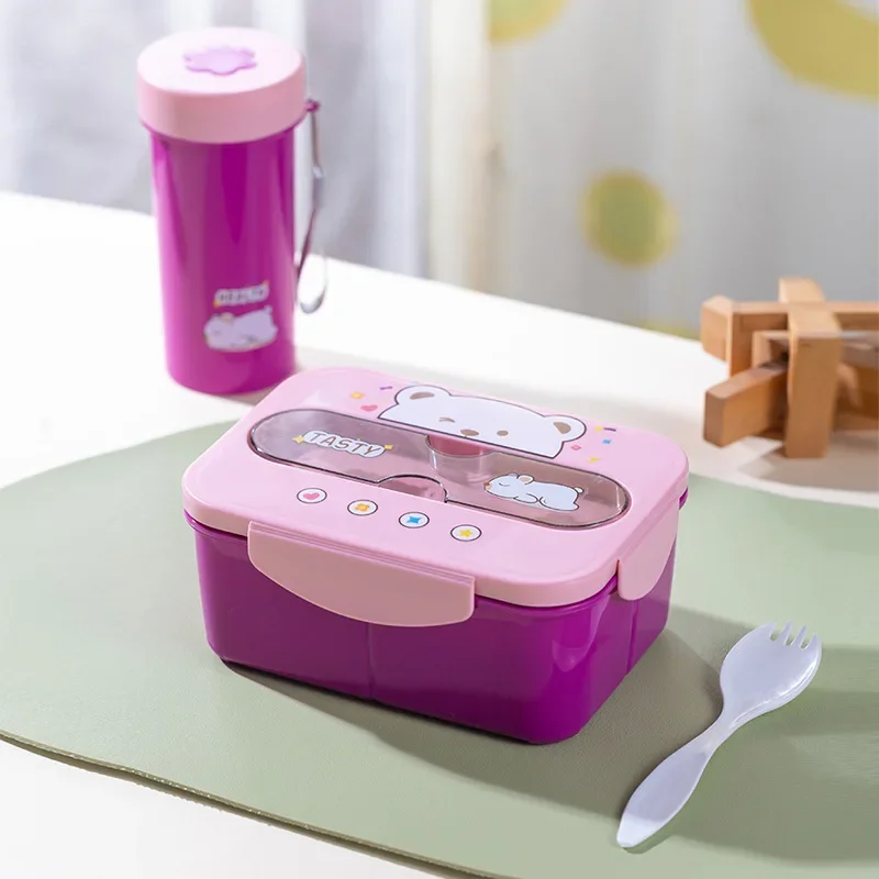 صندوق غداء أطفال كارتوني مع فنجان وشوكة | مجموعة طعام متكاملة خفيفة الوزن – مناسبة للمدرسة والنزهات