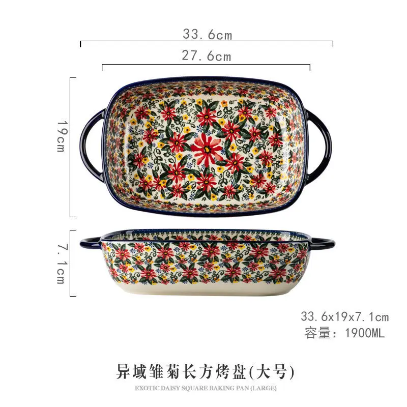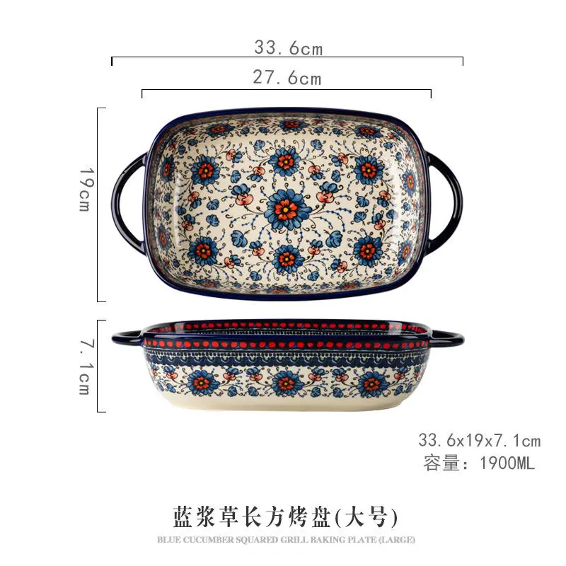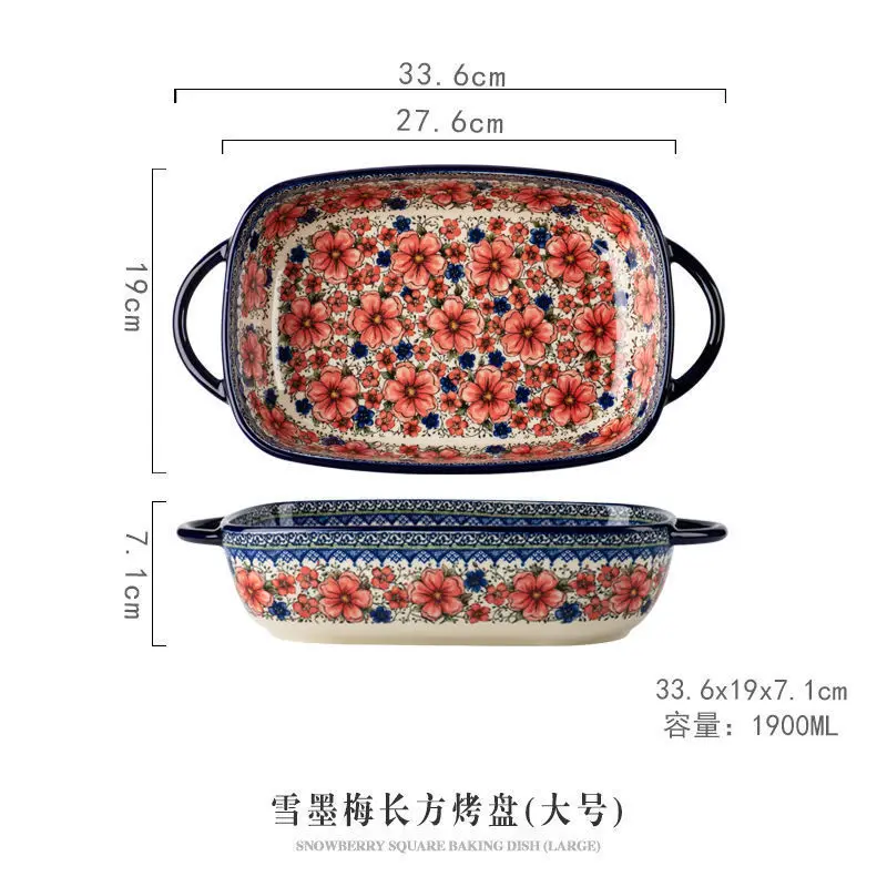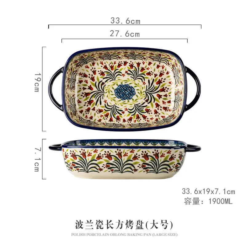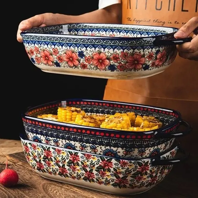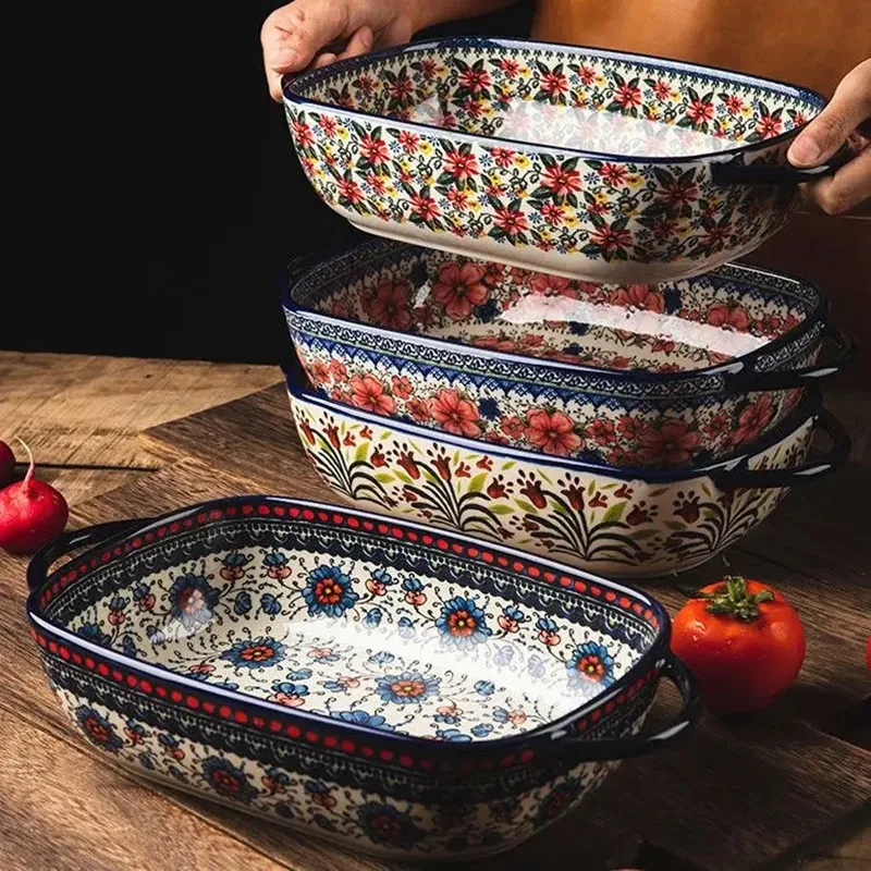 صينية سيراميك بولندية فاخرة مستطيلة – مناسبة للفرن والتقديم | كليك، السلطة، الفواكه والحلويات