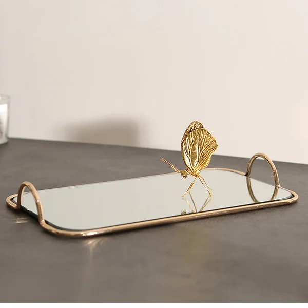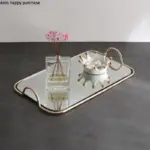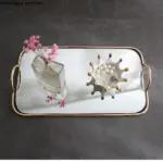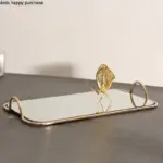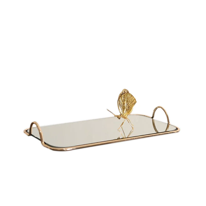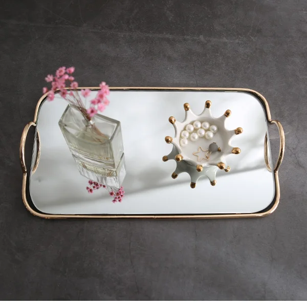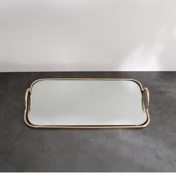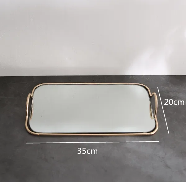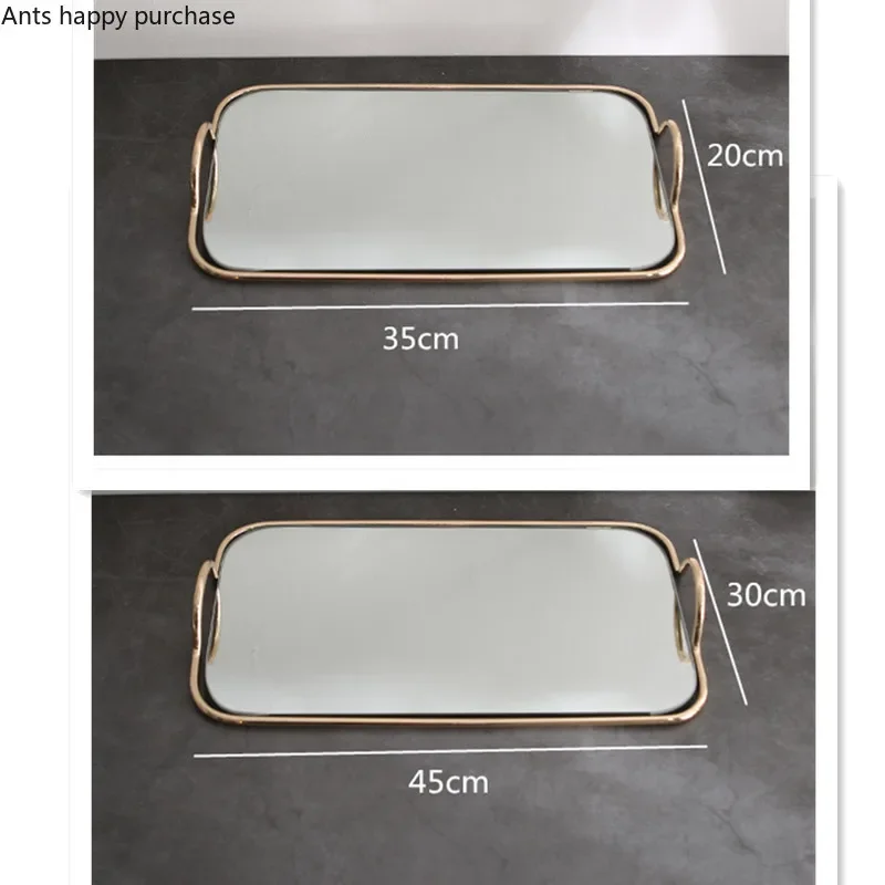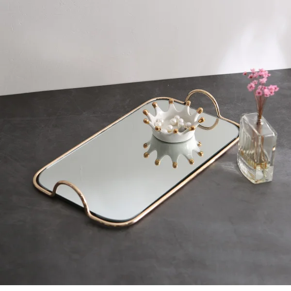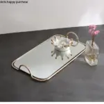 صينية مرايا ذهبية أنيقة بتصميم نُقطي – لعرض المجوهرات أو الفواكه | 45×30 سم / 35×20 سم
