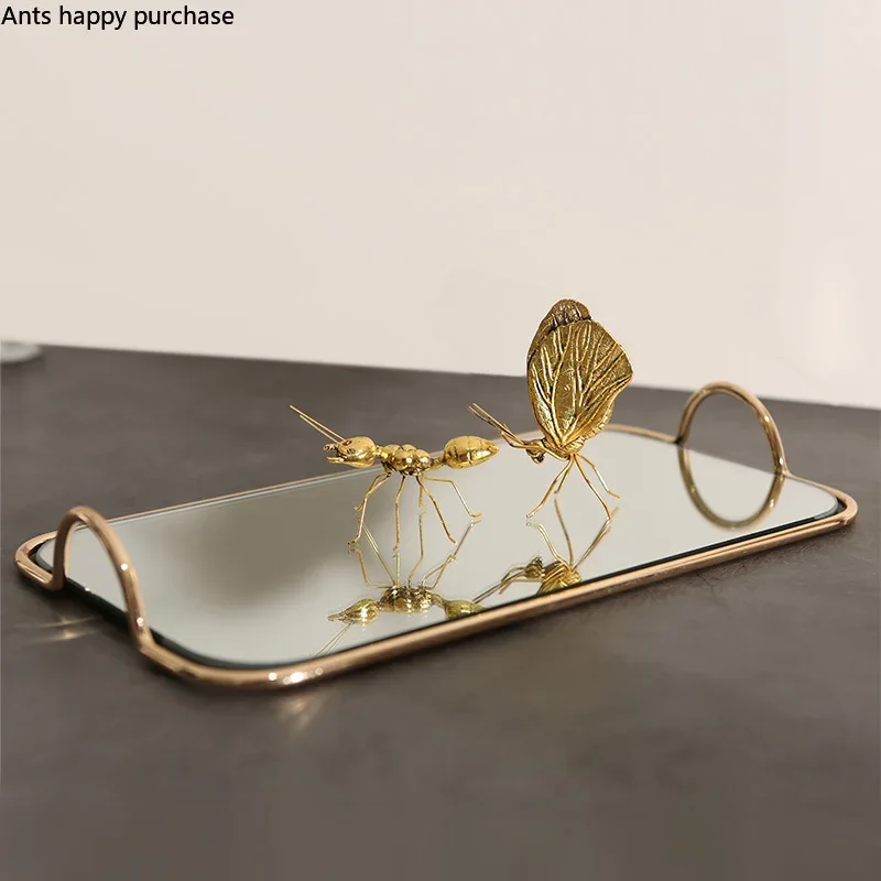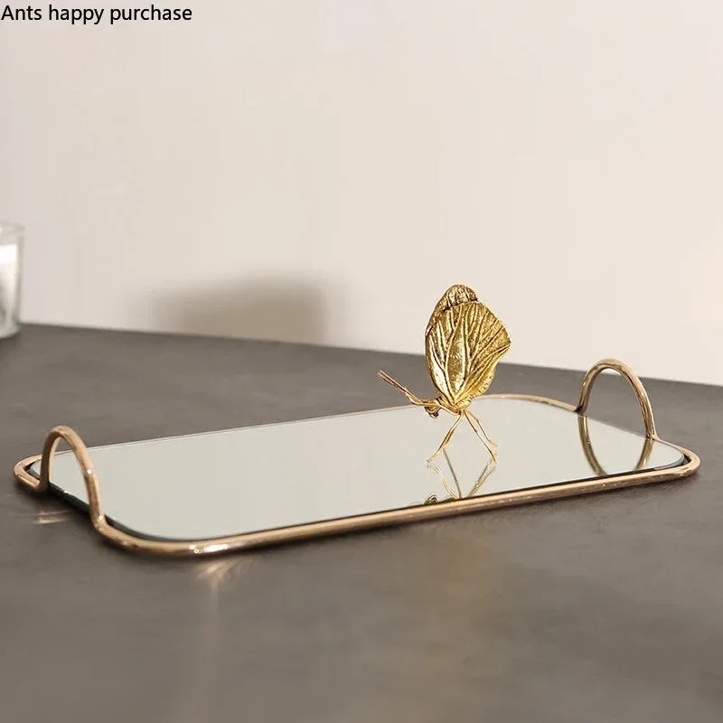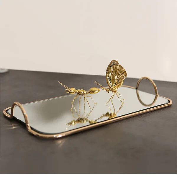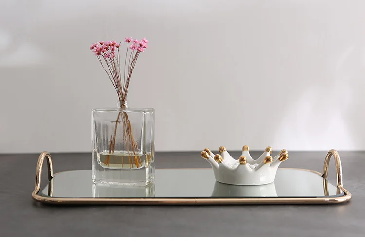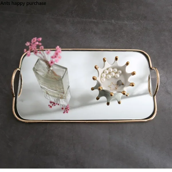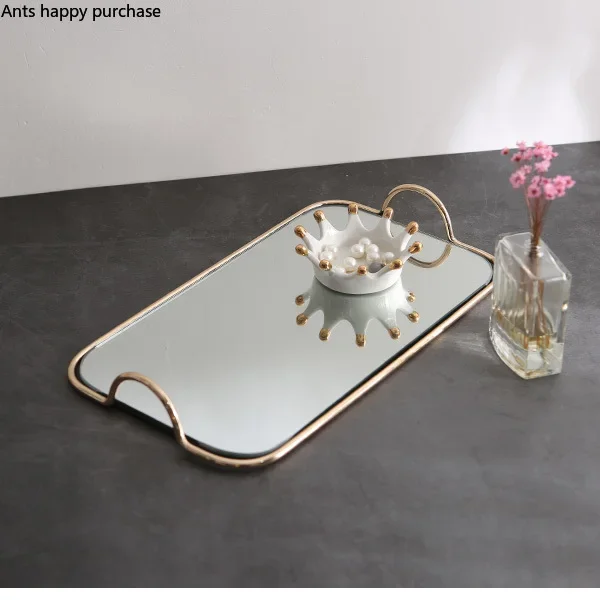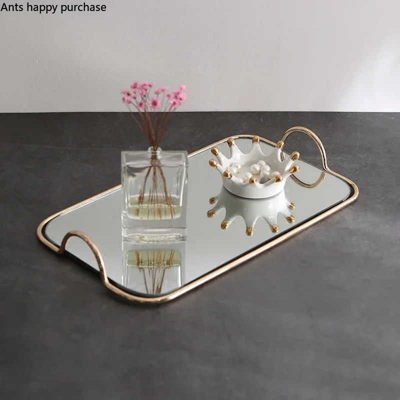 صينية مرايا ذهبية أنيقة بتصميم نُقطي – لعرض المجوهرات أو الفواكه | 45×30 سم / 35×20 سم