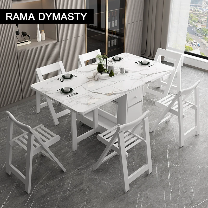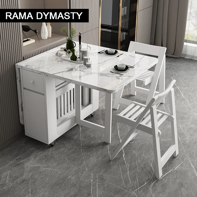 طاولة طعام أنيقة بتصميم اسكندنافي عصري، مصنوعة من ألواح خشبية عالية الجودة (MDF) لتوفر متانة ورقيًا في آن واحد. تتميز بقابليتها للطي مما يجعلها خيارًا مثاليًا للمساحات الصغيرة، كما تأتي بعجلات لسهولة الحركة وإعادة الترتيب.