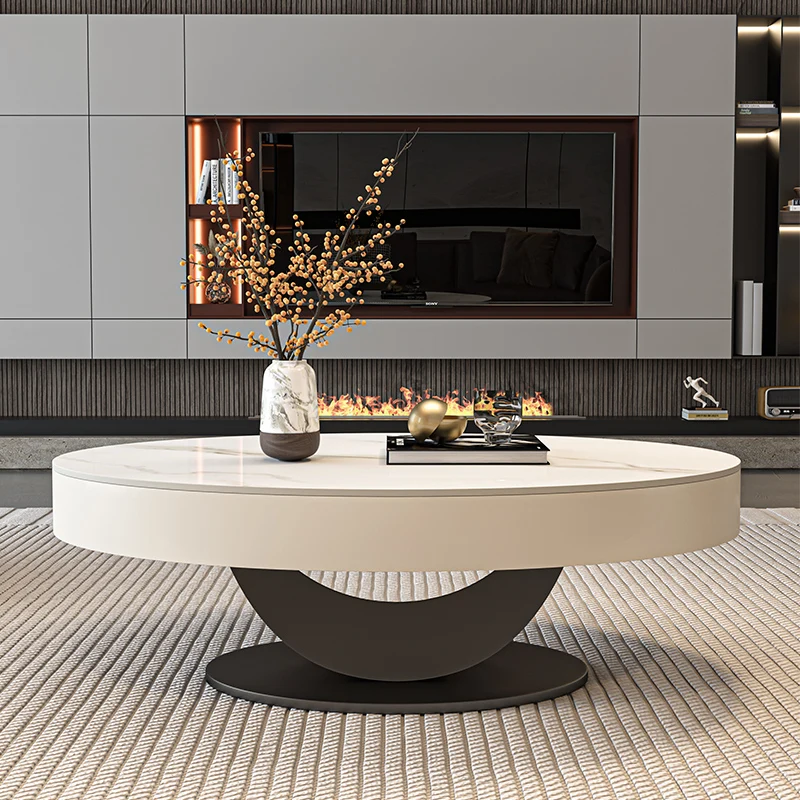 طاولة قهوة بيضاوية فاخرة بتصميم عصري ينتمي لموضة "الرفاهية المضيئة"، تجمع بين متانة الحديد المطاوع وأناقة سطح الحجر الطبيعي. تتميز بمقاسات مثالية (1م × 0.55م × 0.42م) تناسب مختلف مساحات الجلوس، مع سطح بيضاوي فريد يضيف لمسة استثنائية لديكورك.