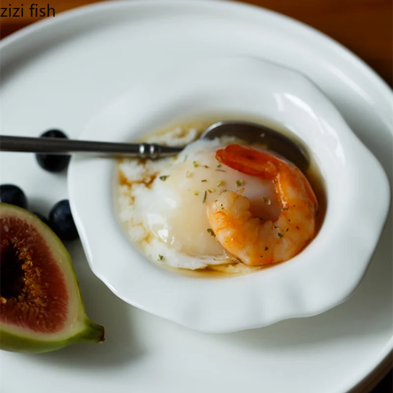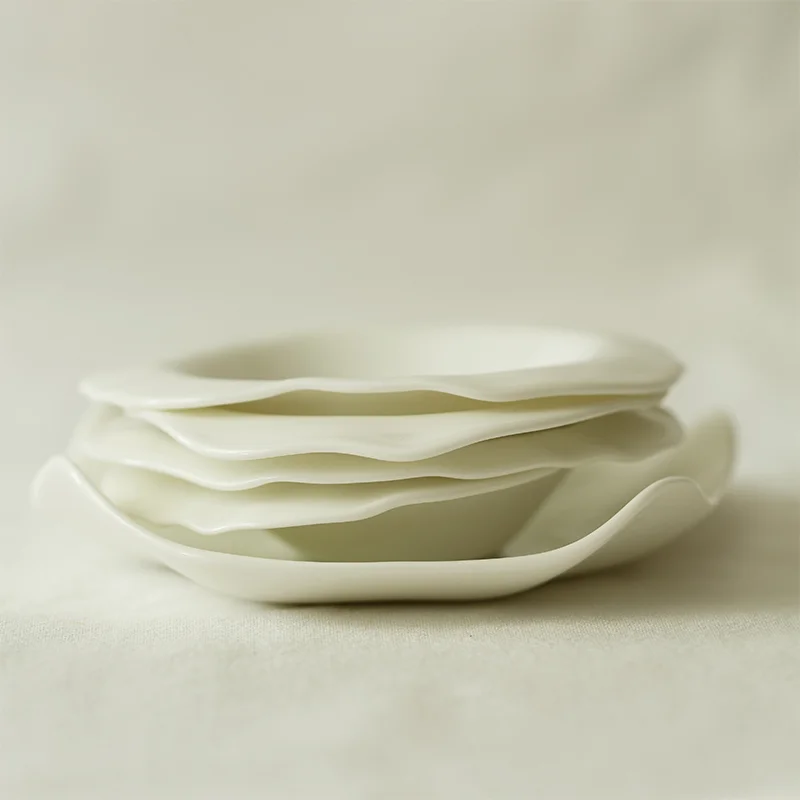 طبق بوني شاينا رفيع جدًا أبيض | تصميم غير منتظم فاخر – مناسب للمجالس والحفلات