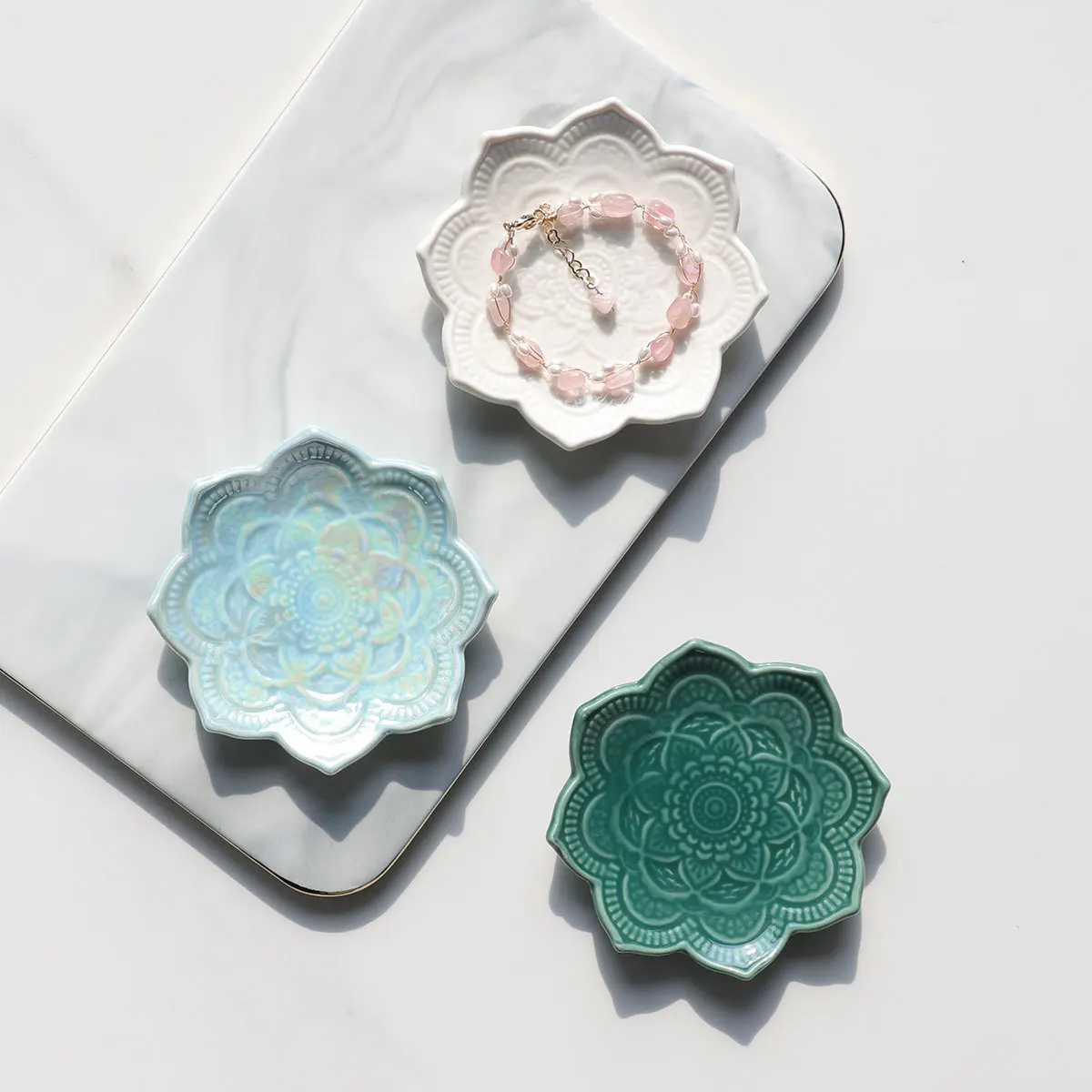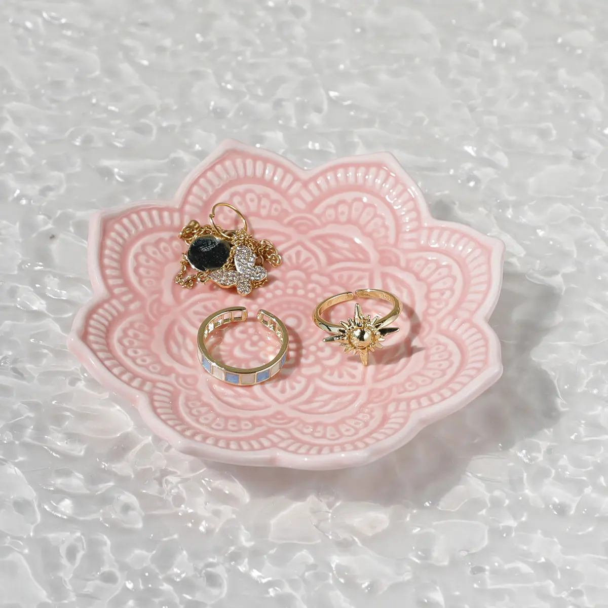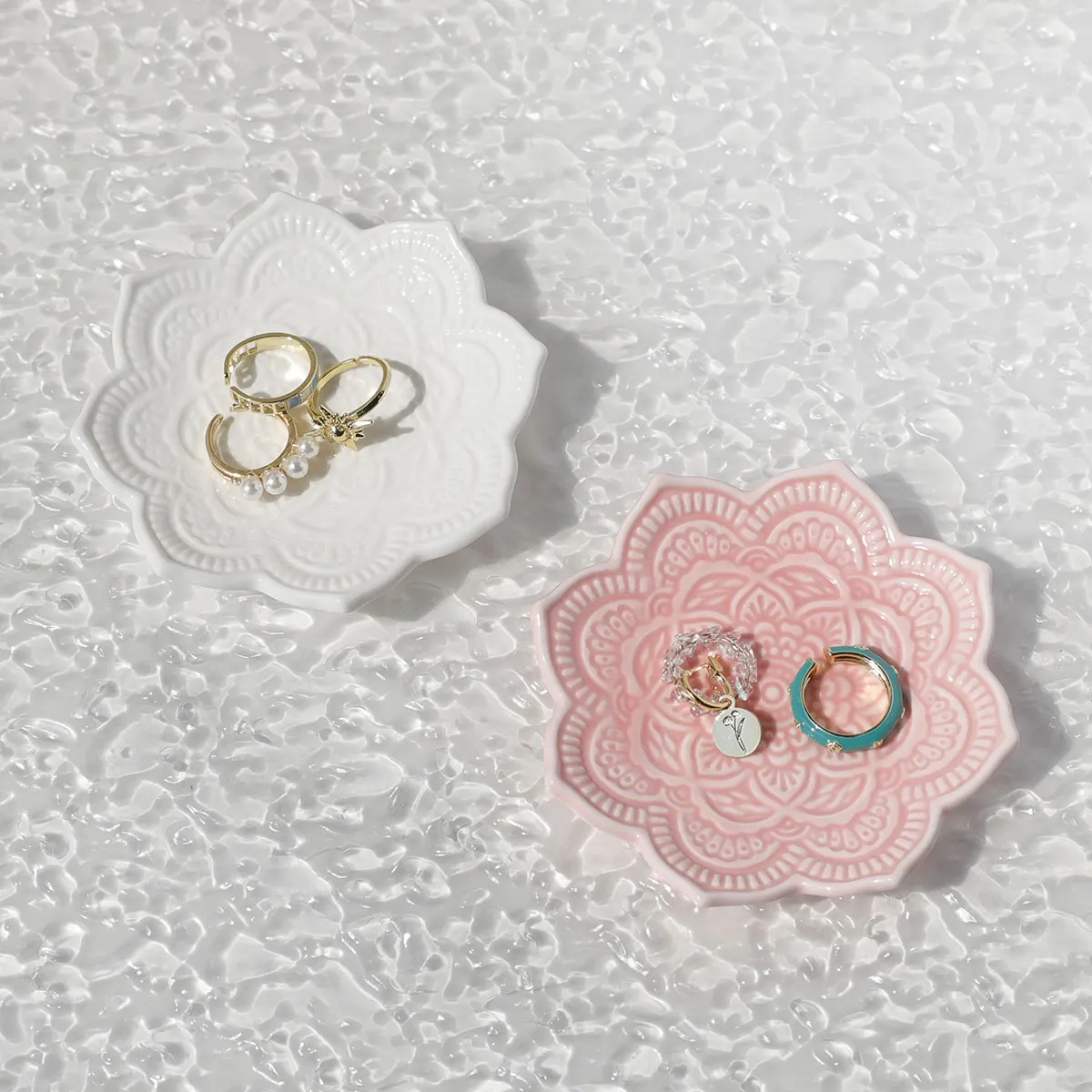 طبق خزفي صغير بتصميم حلقي – مناسب لحفظ المجوهرات، الخواتم، القلائد والمفاتيح 💍✨هدية مثالية للأم، الأخت، الصديقة