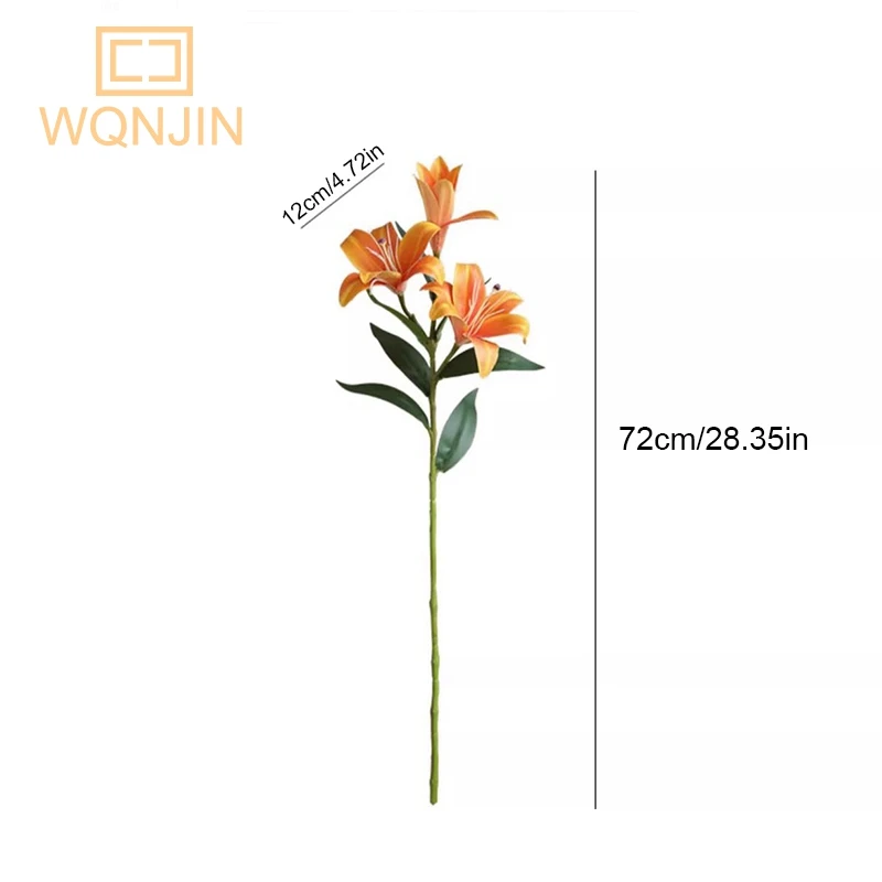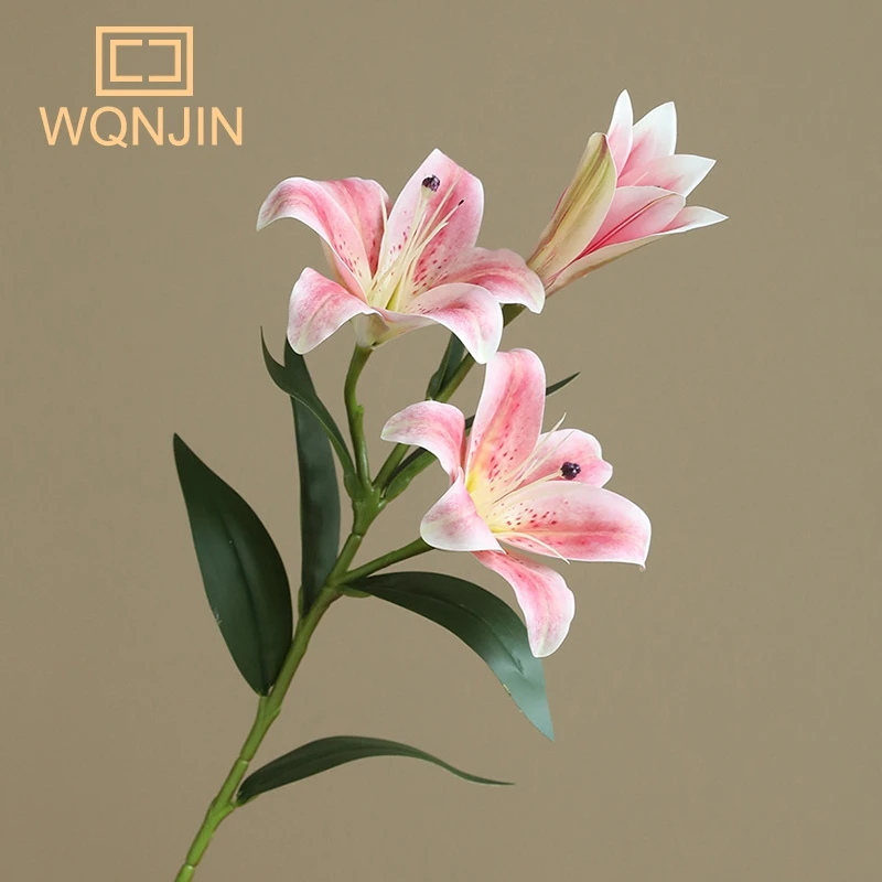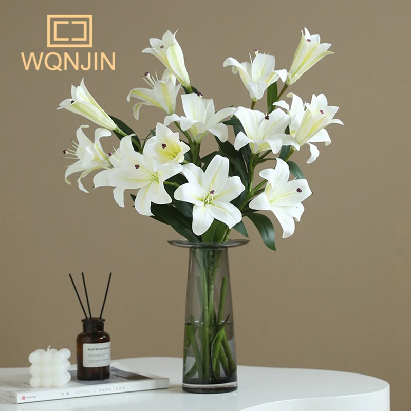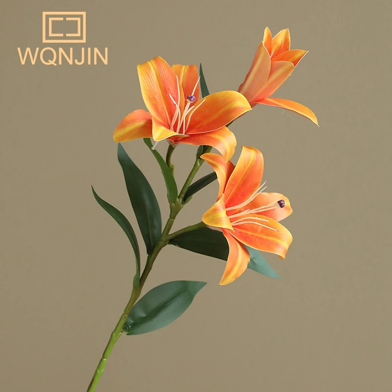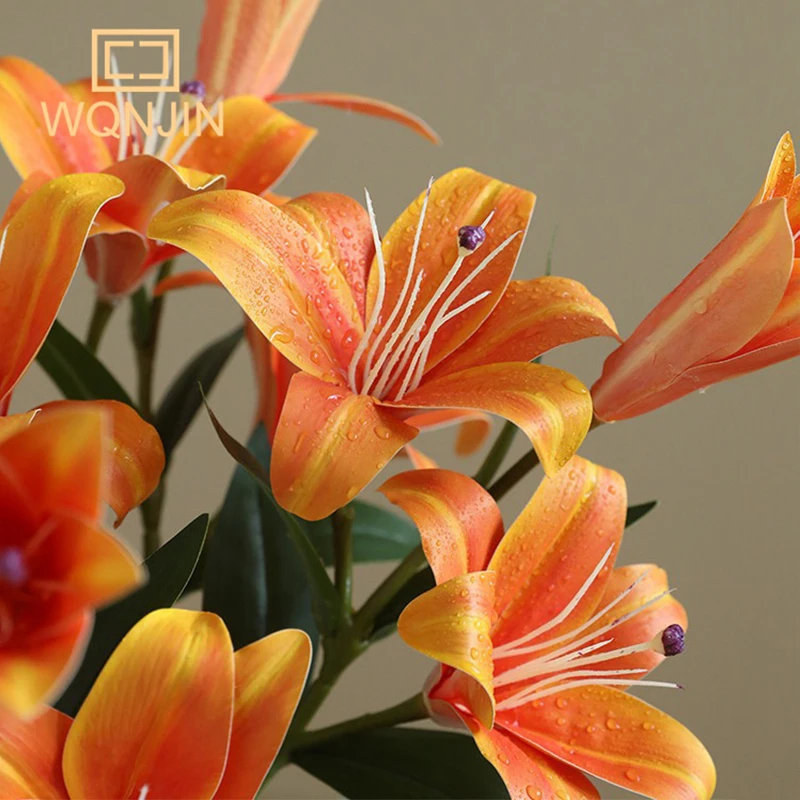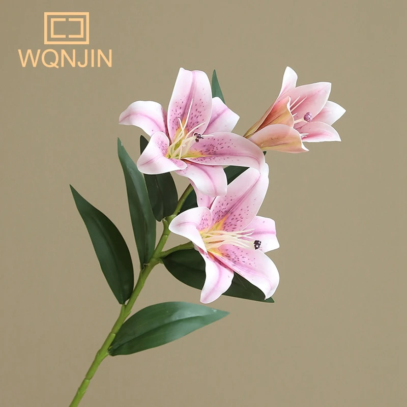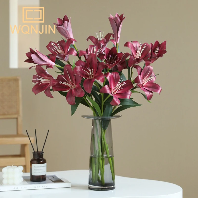 عرض ساخن، زهور زنبق مطبوعة ثلاثية الأبعاد من مادة البولي فينيل كلوريد، ديكور منزلي، باقة زهور زنبق بثلاثة رؤوس، تنسيق زهور الزفاف