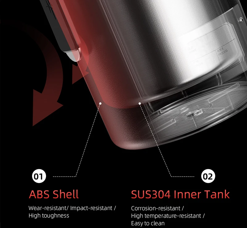 طبقة خارجية من ABS + طبقة داخلية من ستانلس ستيل غذائي