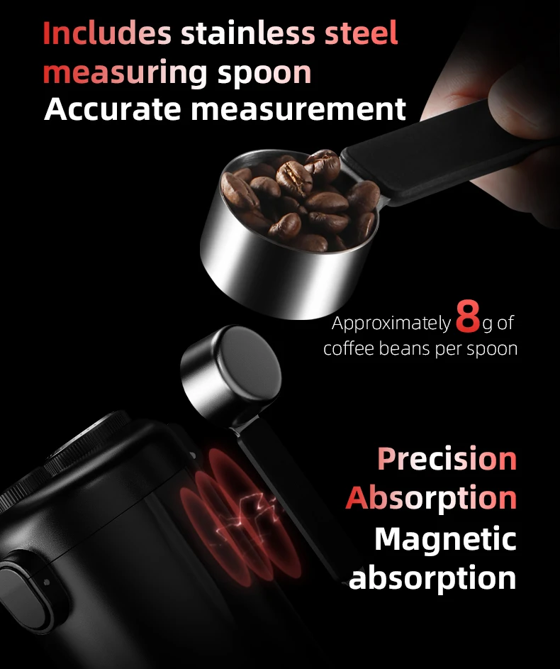 مغرفة مغناطيسية مدمجة : 8 غرام بكل مغرفة، تثبت على جدار العلبة وتمنحك دقة في القياس