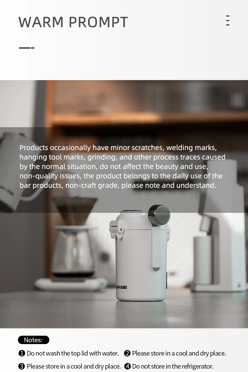 تصميم عملي وفاخم يحافظ على جودة البن ويحميه من العوامل الخارجية، وهو خيار مثالي لكل محبي القهوة المنزلية اللي يقدرون التفاصيل الصغيرة التي تفرق في النكهة.