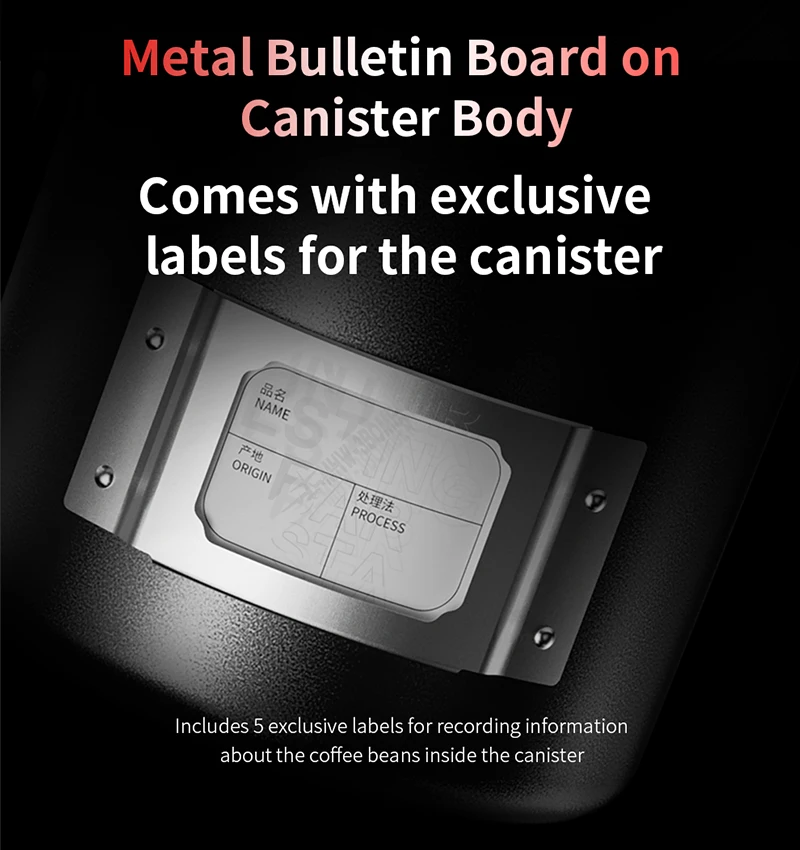 لوحة معدنية للتذكيرات : تسجل فيها نوع البن، مكان التحميص، درجة التحميص، وغير ذلك من المعلومات المهمة