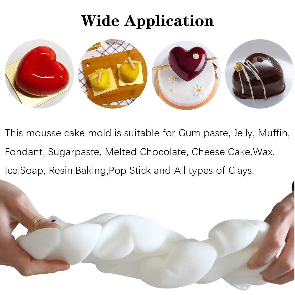 • استخدمي هذا القالب الفاخر عشان تصنعي حلوياتك بأناقة وجاذبية! تصميم فريد ثلاثي الأبعاد على شكل قلب عميق وجذاب ، ومناسب لتحضير الموس، الشوكولاتة، الفوندان، الكب كيك، التشيز كيك، الجيلي وحتى الصابون اليدوي.