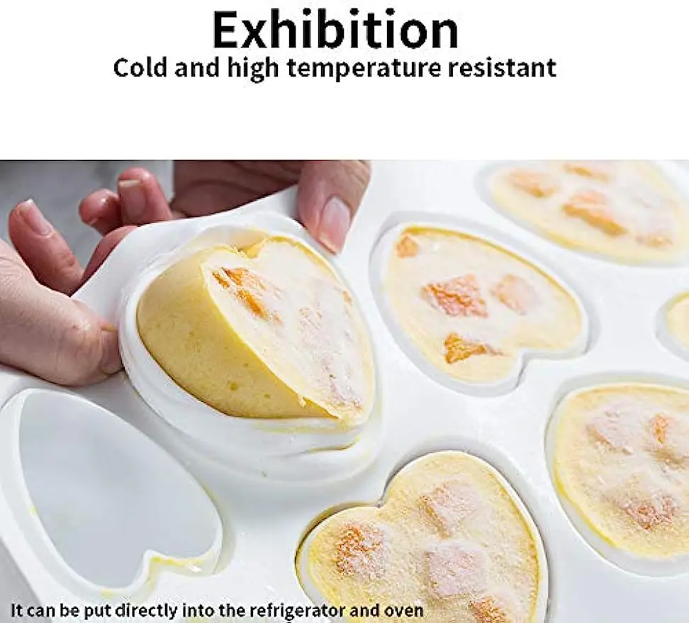 مصنوع من سيليكون طبي عالي الجودة 100% ، خالي من مادة BPA الضارة ، مقاوم للحرارة، مرِن، وسهل الفك بدون ما تلتصق فيه المواد. مناسب تمامًا للفرن، المجمد، المايكرويف، الغسالة الصحون، ويتحمل درجات الحرارة من -40 إلى +230 درجة مئوية (-40 إلى 446 فهرنهايت) .