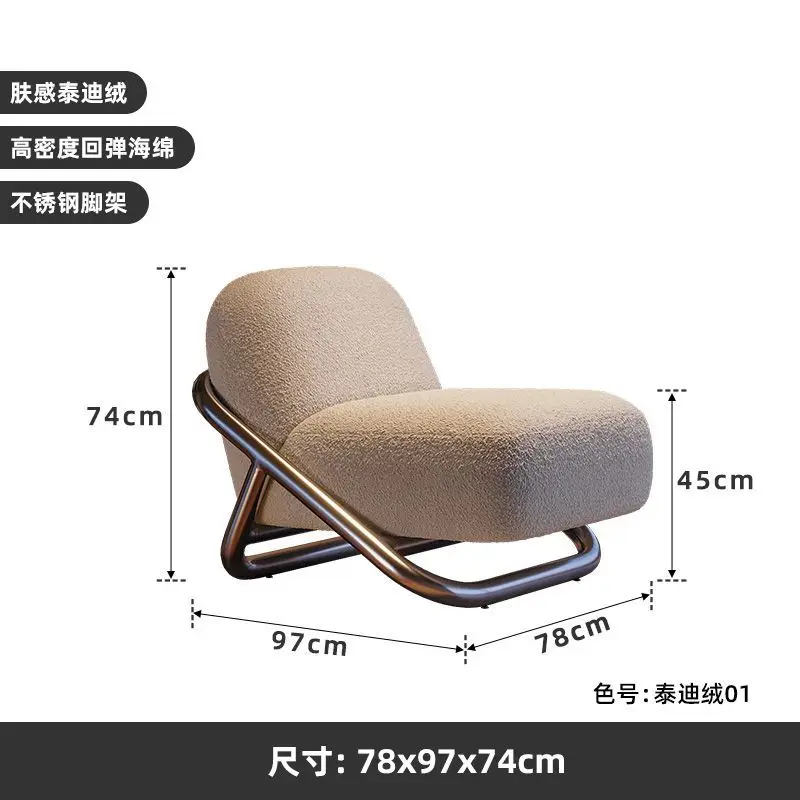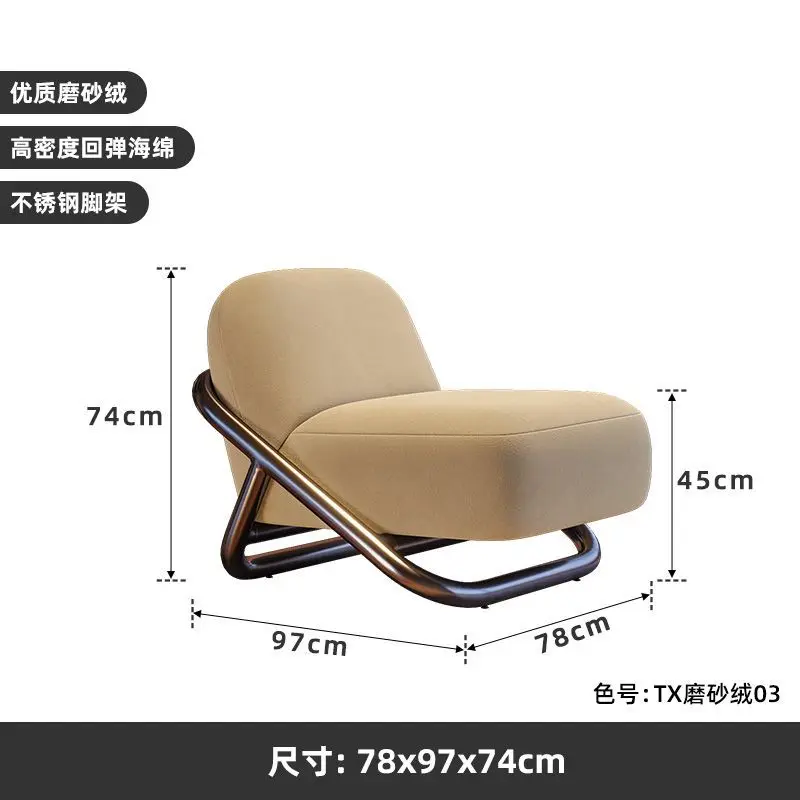 كرسي فاخر بتصميم عصري بسيط، يجمع بين الأناقة والراحة في قطعة واحدة. يتميز بهيكل من الستانلس ستيل المقاوم للصدأ مع تنجيد من الفانيلا الناعم، مما يضمن متانة طويلة الأمد وراحة فائقة.