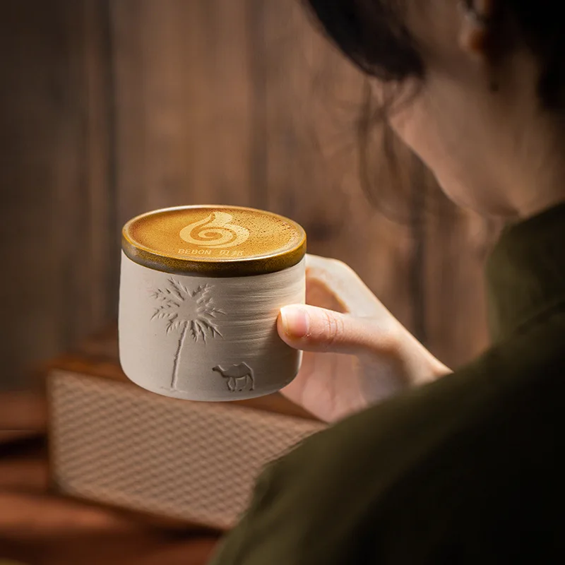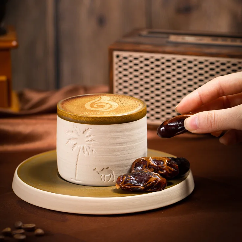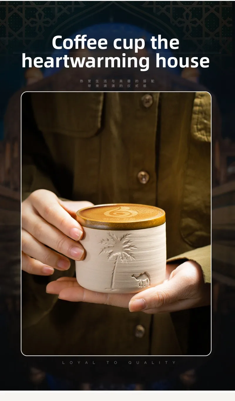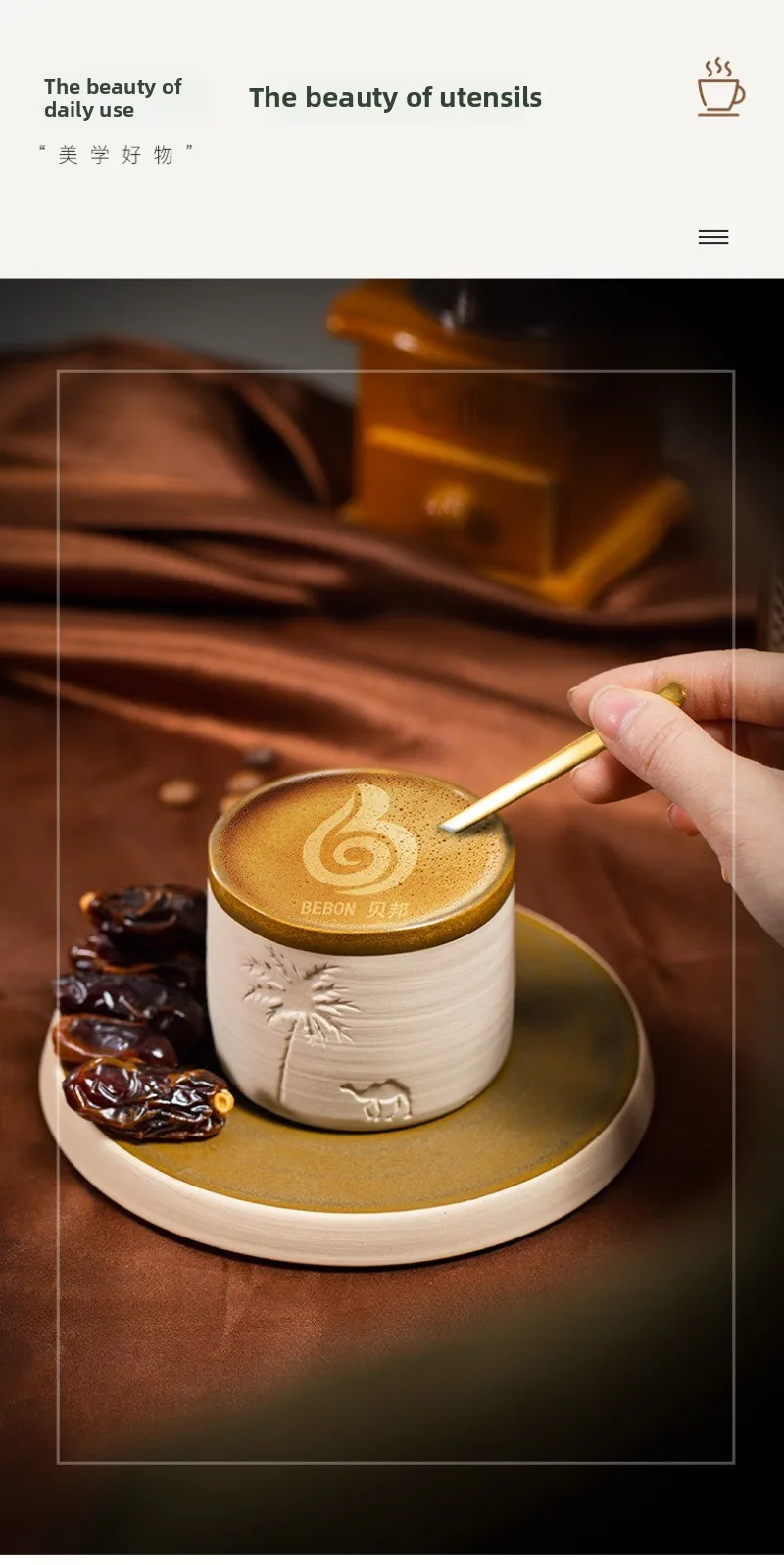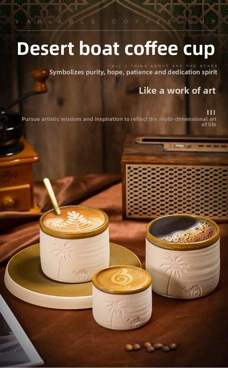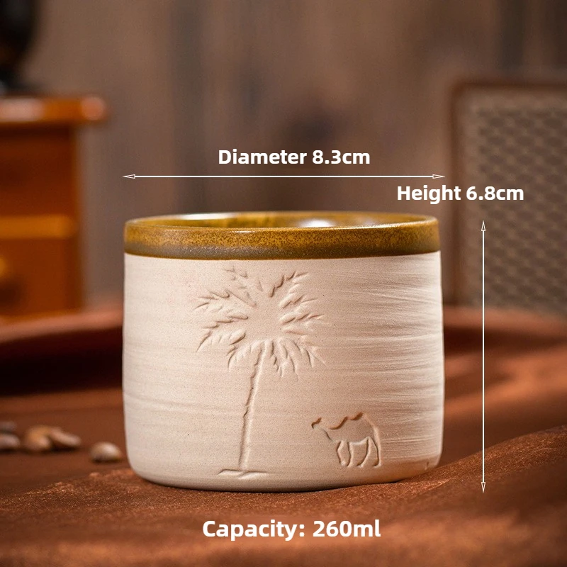 كوب إسبريسو سيراميك على الطراز العربي – كوب جمل مرسوم يدويًا | تصميم عربي تقليدي – هدية تراثية فريدة