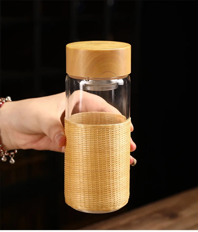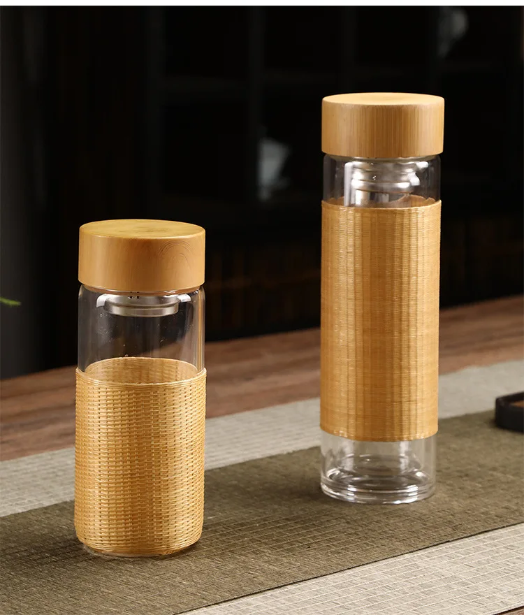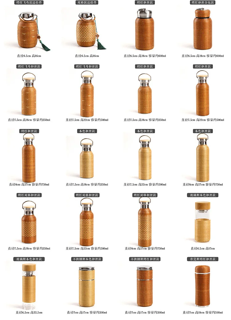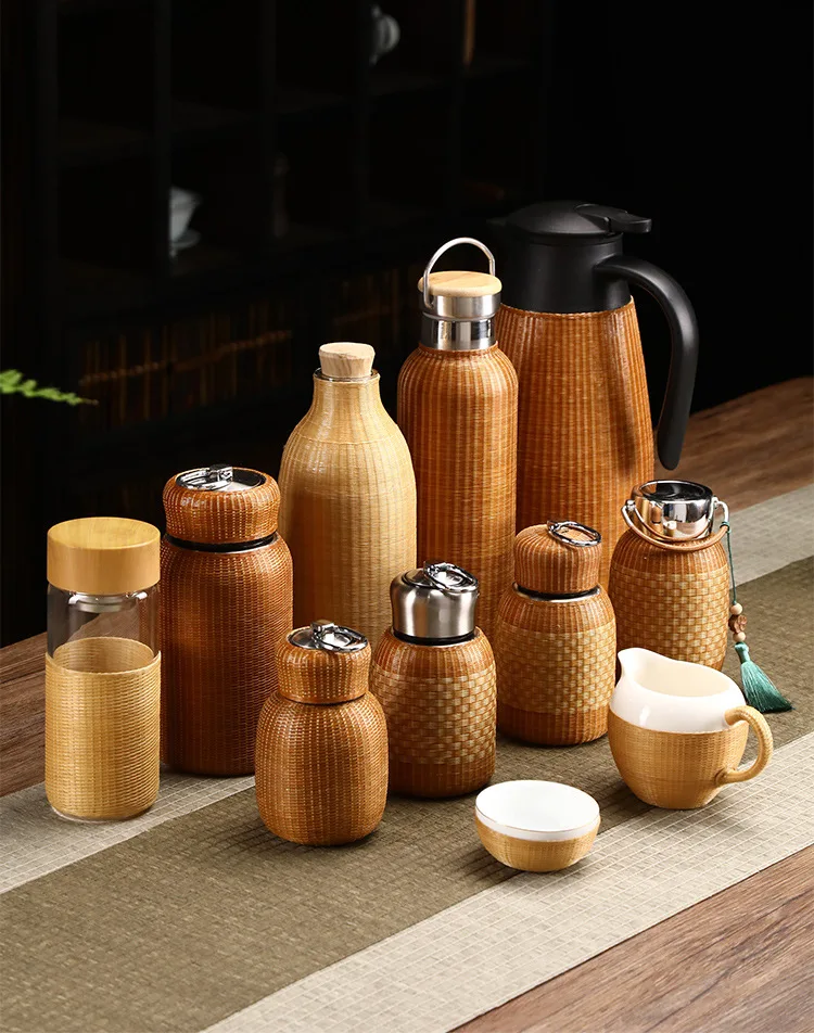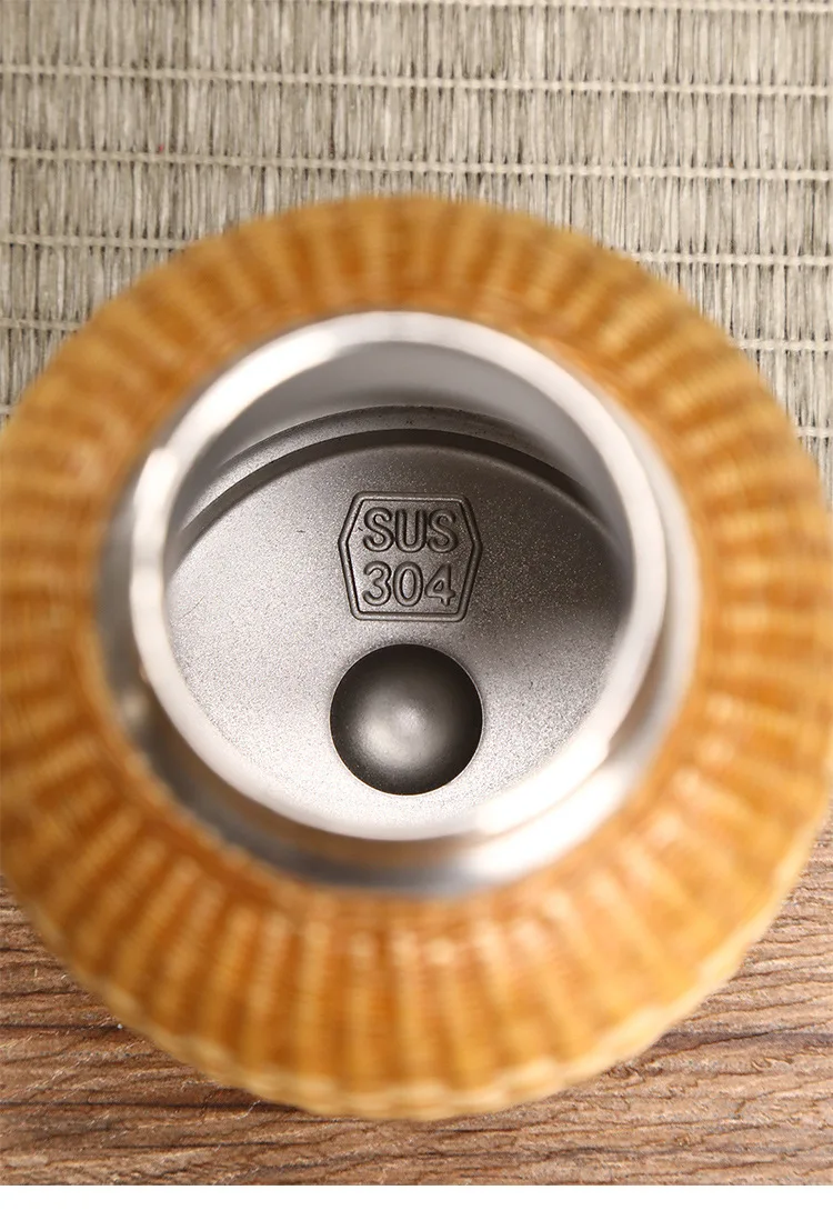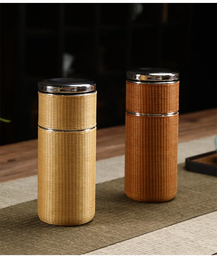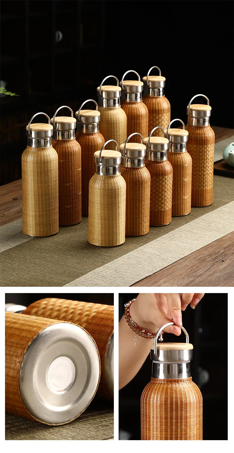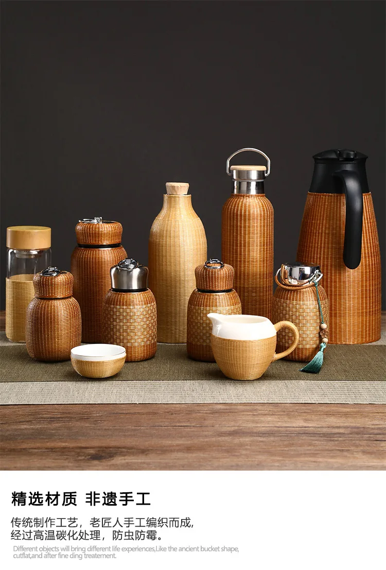 كوب ترمس منسوج من الخيزران ، ريترو صيني ، هدايا مهرجان راقية ، زجاجة مياه مفرغة داخلية من الفولاذ المقاوم للصدأ
