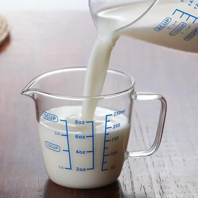 كوب زجاجي حراري 1 قطعة – كوب قياس شفاف من الزجاج البورسيليكي | كوب حليب للأطفال مع تدريج دقيق – عملي وآمن