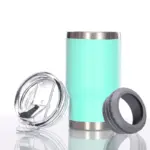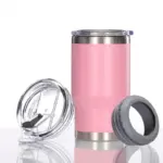 كوب سفر حراري 4 في 1 – عازل حراري للكانز والسور بيرة 12 أونص | كوب ثلج صيفي عالمي مع غطاءين مختلفين