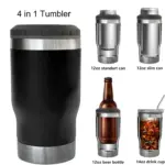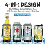 4 in 1 Travel Mug and Can Cooler Insulator for 12 oz Cans and Beer Bottle.