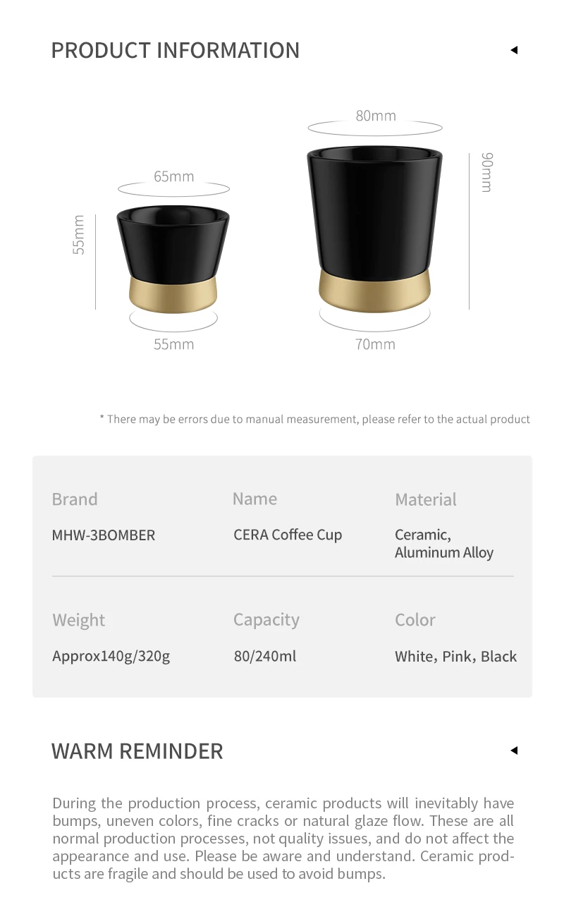 كوب سيراميك قهوة MHW-3BOMBER – كوب إسبريسو فاخر | كوب شاي وقهوة عملي – مناسب للمقاهي والمكاتب