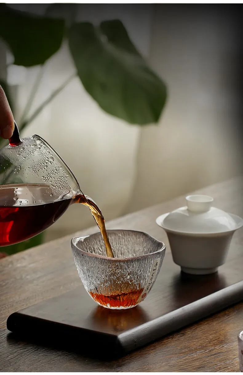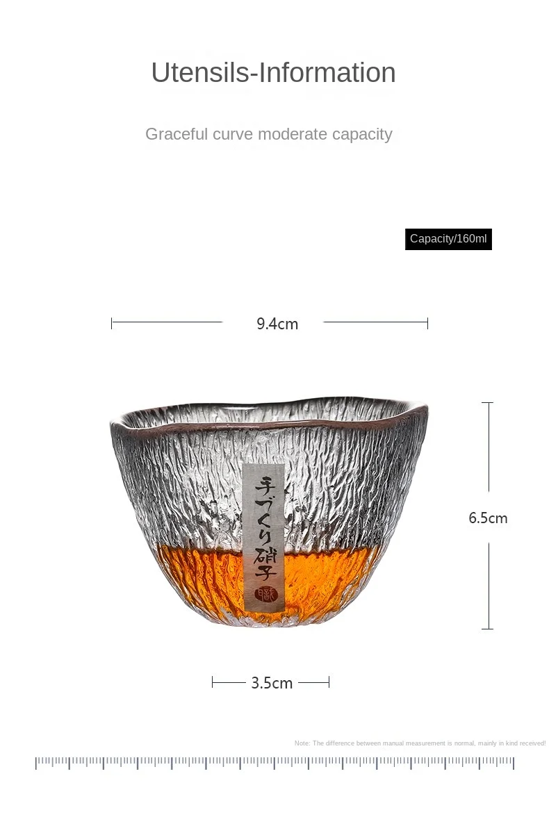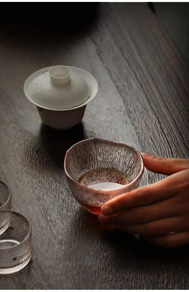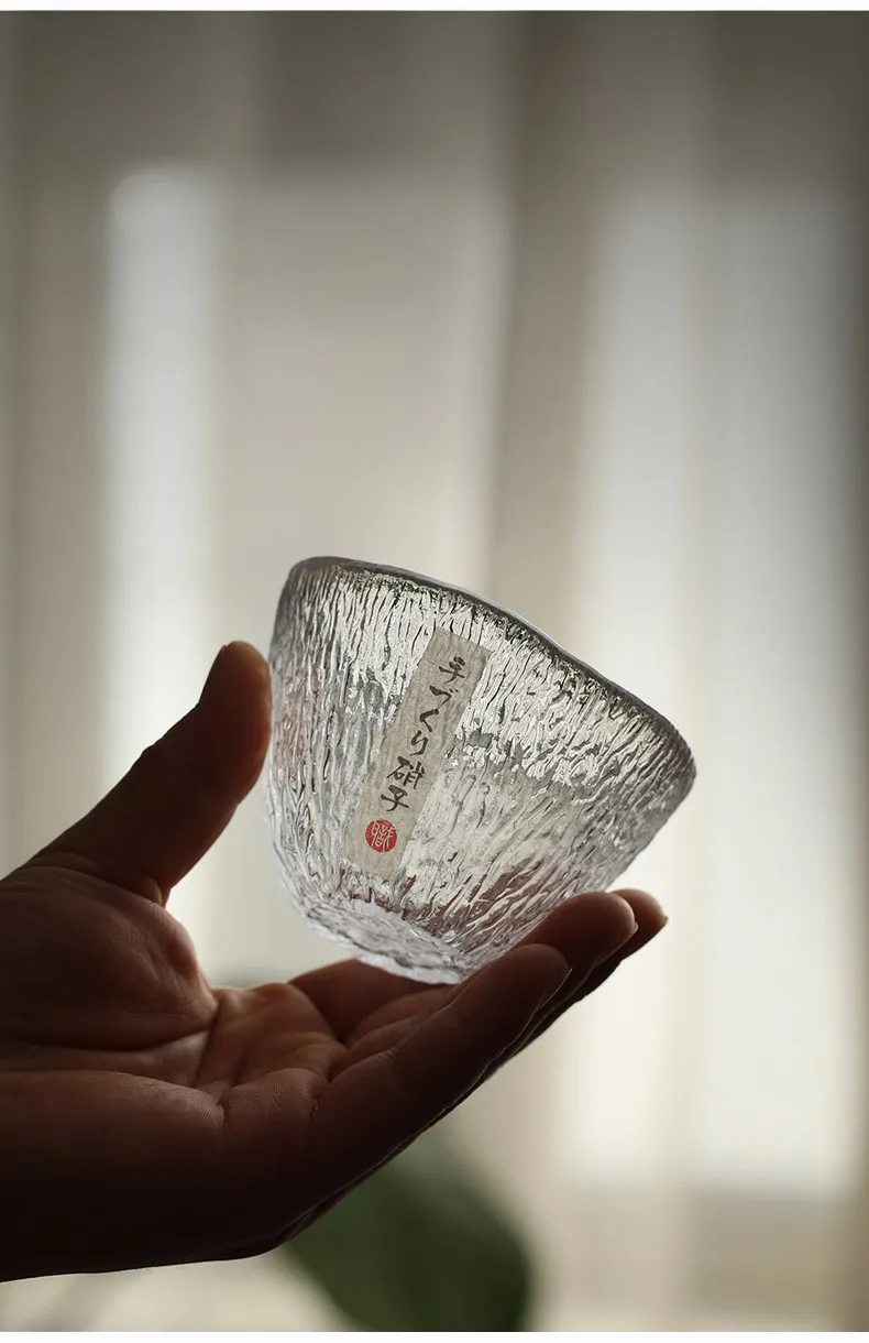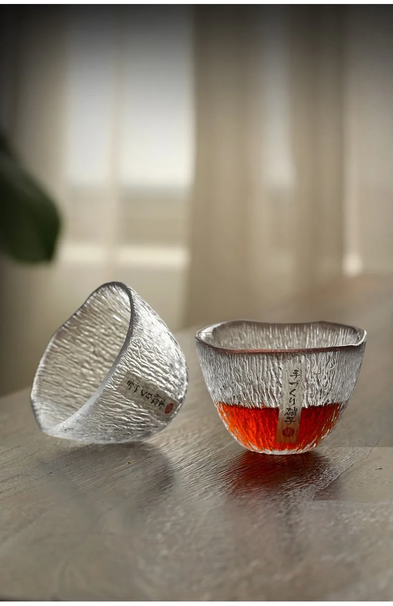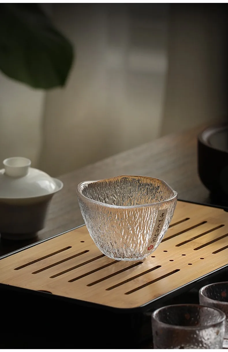 كوب شاي زجاجي حراري 160مل – كوب قطرات المطر الشفاف | تصميم ياباني أنيق – مناسب للشاي الصيني والنبيذ