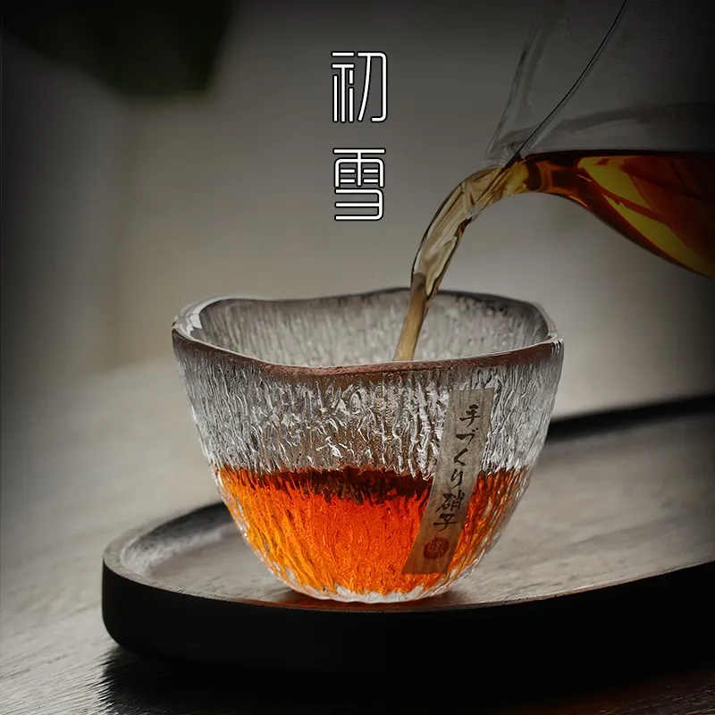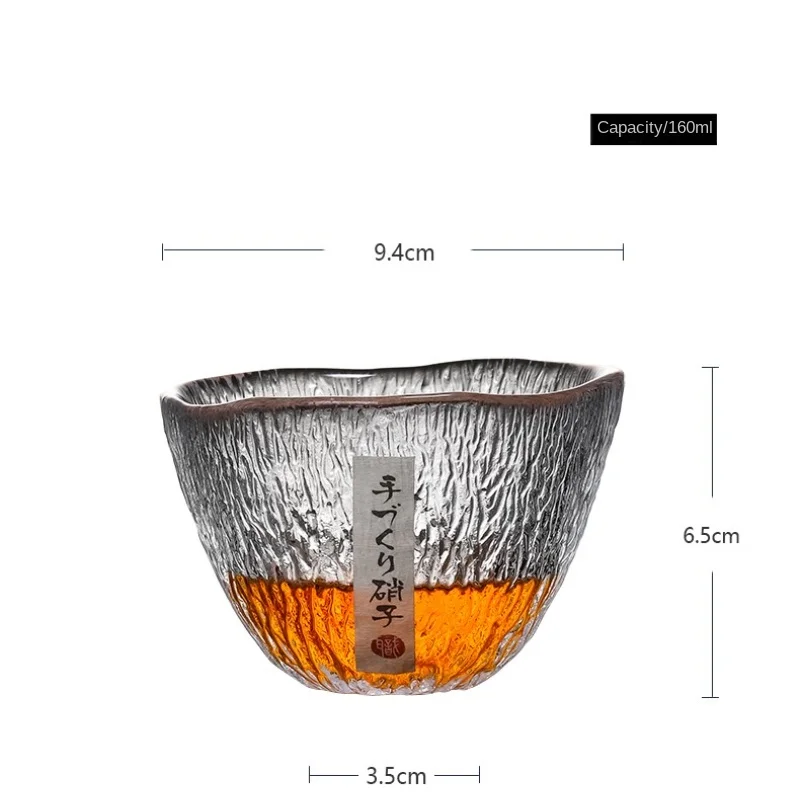 كوب شاي زجاجي حراري 160مل – كوب قطرات المطر الشفاف | تصميم ياباني أنيق – مناسب للشاي الصيني والنبيذ